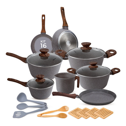 Jogo De Panelas Antiaderente Indução Cerâmica Atoz 16 Peças Grafite