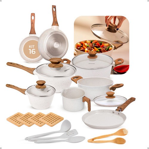 | Jogo De Panelas Antiaderente Indução Cerâmica Atoz 16 Peças Mármore este produto | R$ 689,03 | 10% | 4.9/5 | 18 |