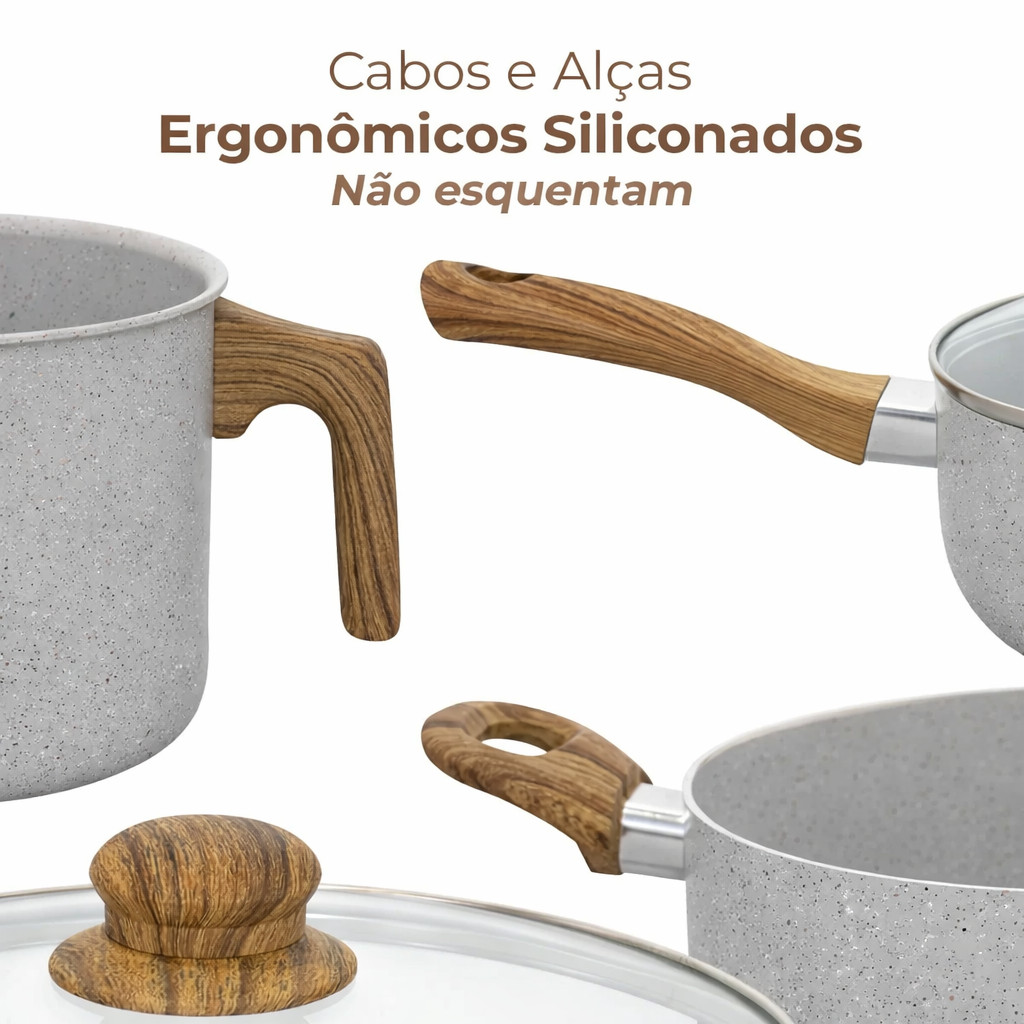 Jogo de Panelas Antiaderente Revestimento Cerâmica Sahara Grey 8 Peças - Casambiente