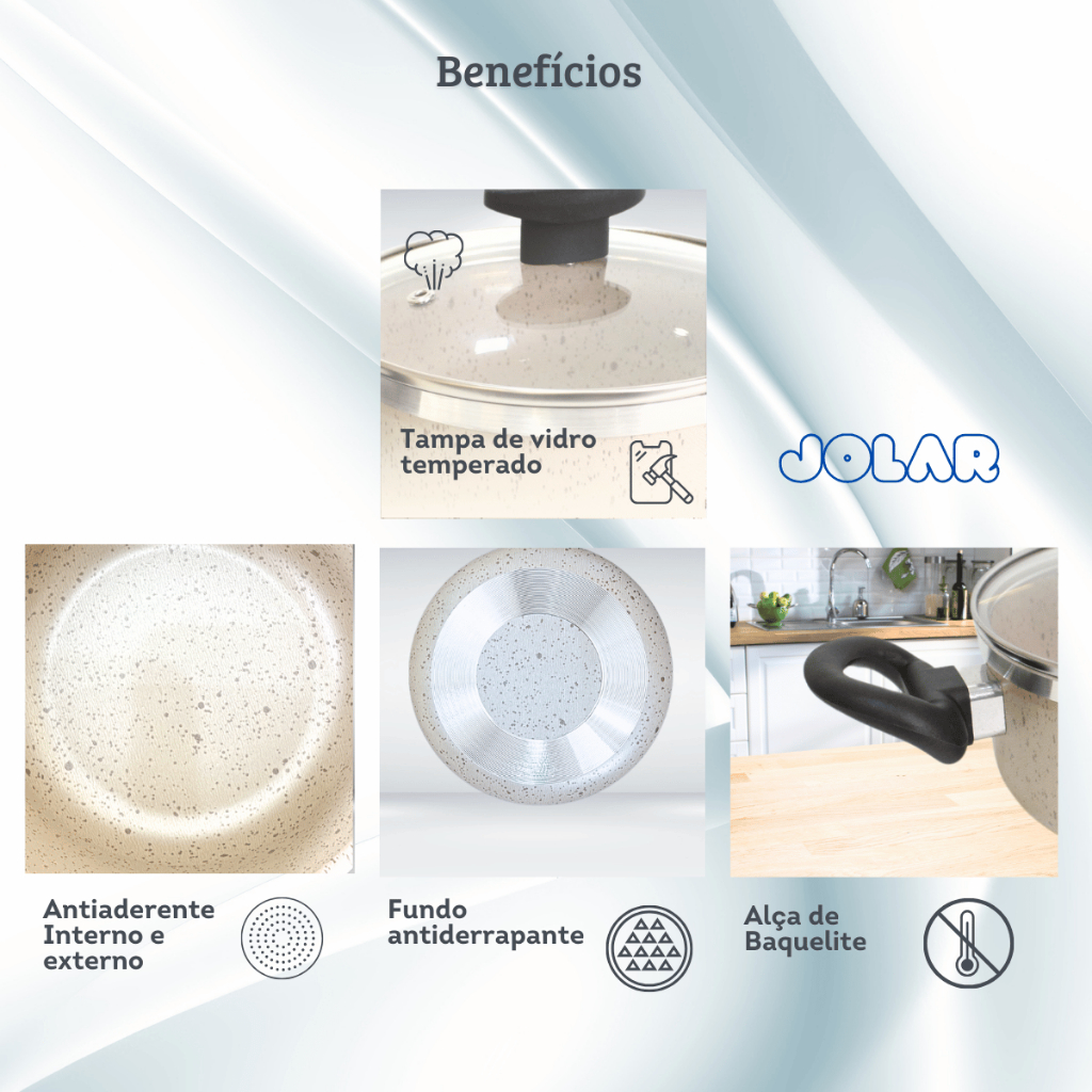 >>> Bem-vindo à Jolar - Mais de 10 mil itens à pronta entrega! -------------------------------------------------------------------------------------------- Somos uma loja nova na Shopee e oferecemos linhas de utilidades para o seu lar. Por sermos uma loja recém-inaugurada, estamos construindo nossa reputação na plataforma e contamos com seu apoio e confiança. Não se preocupe! Sua compra é 100% segura e garantida pela Shopee. >>> DESCRIÇÃO DO PRODUTO: -------------------------------------------------------------------------------------------- As Panelas Antiaderente Teflonada Bege Vanilla, Cinza Grafite e Vermelha da marca OM Alumínio e mais a Panela de Pressão 4,5 Litros Fechamento Externa são ideais para quem busca qualidade e praticidade na cozinha. Com espessura de 3mm, garantem durabilidade e eficiência no preparo das refeições do dia a dia. O kit inclui 6 peças, perfeito para diversas receitas. Feitas em alumínio com revestimento antiaderente , facilitam a limpeza e evitam que os alimentos grudem, proporcionando uma experiência culinária mais agradável. Além disso, as tampas de vidro permitem visualizar o cozimento dos alimentos sem a necessidade de abrir as panelas. Características Técnicas: Material: Alumínio com revestimento interno e externo antiaderente de alta qualidade. Quantidade de peças: 6 peças (1- Caldeirãozinho 16cm/ 1,5 Litros, 1- Caçarola 18cm/ 1,7 Litros, 1- Caçarola 20cm/ 2,3 Litros , 1- Caçarola 22cm/ 3,2 Litros, 1- Caçarola 24cm/ 4,2 Litros) e 1- Panela de Pressão Fechamento Externo 4,5 Litros. Cores disponíveis: Bege Vanilla, Cinza e Vermelha Compatibilidade: Todos os tipos de fogão (exceto indução) DIFERENCIAIS: - Panelas Grossas 3MM de boca para deixá-las mais fortes e resistentes caso elas venham a sofrer quedas. O corpo da panela possui 2mm de espessura. - Tampas com vidro temperado, mais resistente. - Antiaderente, mais saúde para sua família. Consome menos óleo, mais fácil de limpar. - Material: Alumínio. - Alça: Baquelite - Revestimento: Interno e Externo de antiaderente - Livre de PFOA INSTRUÇÕES DE USO: - Não pode ir ao forno - Não vai ao micro- ondas - Não utilizar em fogões de indução PRONTA ENTREGA - ENVIAMOS PARA TODO BRASIL - COM NOTA FISCAL - SEU PRODUTO BEM EMBALADO NA CAIXA COM PLÁSTICO BOLHA. PERGUNTAS FREQUENTES: O PRODUTO ACOMPANHA NOTA FISCAL? Sim. Todos os nossos produtos são enviados com Nota Fiscal emitida pelo CPF/CNPJ informado. O QUE TENHO QUE FAZER ANTES DE COMPRAR? Tenha certeza se é o produto que procura. Antes de clicar em comprar, verifique os seus dados de cadastro, como CPF ou CNPJ e endereço para entrega. QUAIS AS GARANTIAS DO MEU PRODUTO? Todos os nossos produtos possuem garantia contra defeito de fabricação. POSSO DEVOLVER O MEU PRODUTO? De acordo com o Código de defesa do consumidor, produto comprado na internet pode ser devolvido em até 7 dias e sem motivação. QUANDO SÃO FEITOS OS ENVIOS? Todos os nossos produtos são enviados em até 24h úteis. 99% é enviado antes. Para isso mantenha seus dados atualizados. POSSO COMPRAR VÁRIOS ITENS DIFERENTES? Sim. Se você se interessar por mais de um produto da nossa loja, basta colocá-los no carrinho e depois efetuar o pagamento de todos ao mesmo tempo. Desse jeito você pode até ganhar frete grátis ou um desconto considerável. Estamos a disposição para tirar qualquer dúvida, Aguardamos seu pedido! Garantia do vendedor: 30 dias