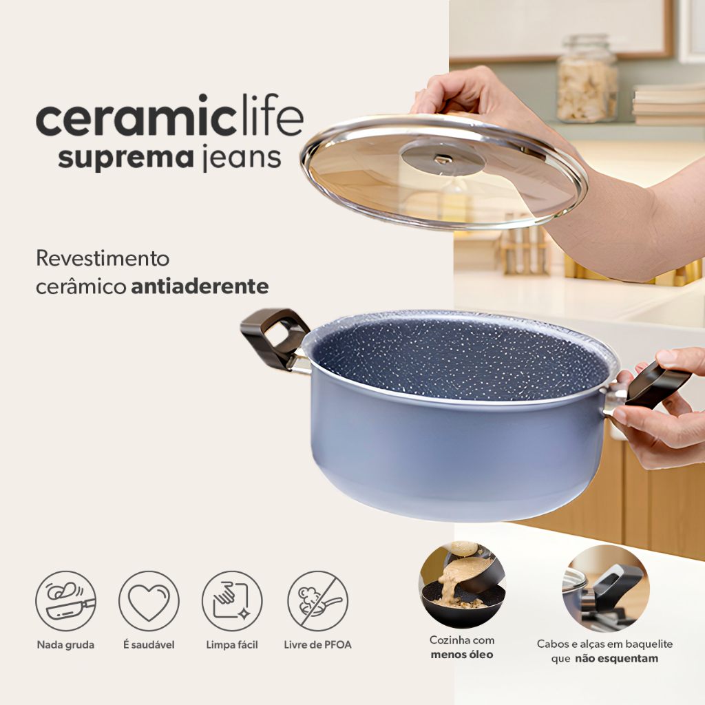 Jogo de Panelas Brinox Antiaderente Ceramic Life 6 Peças Suprema Jeans