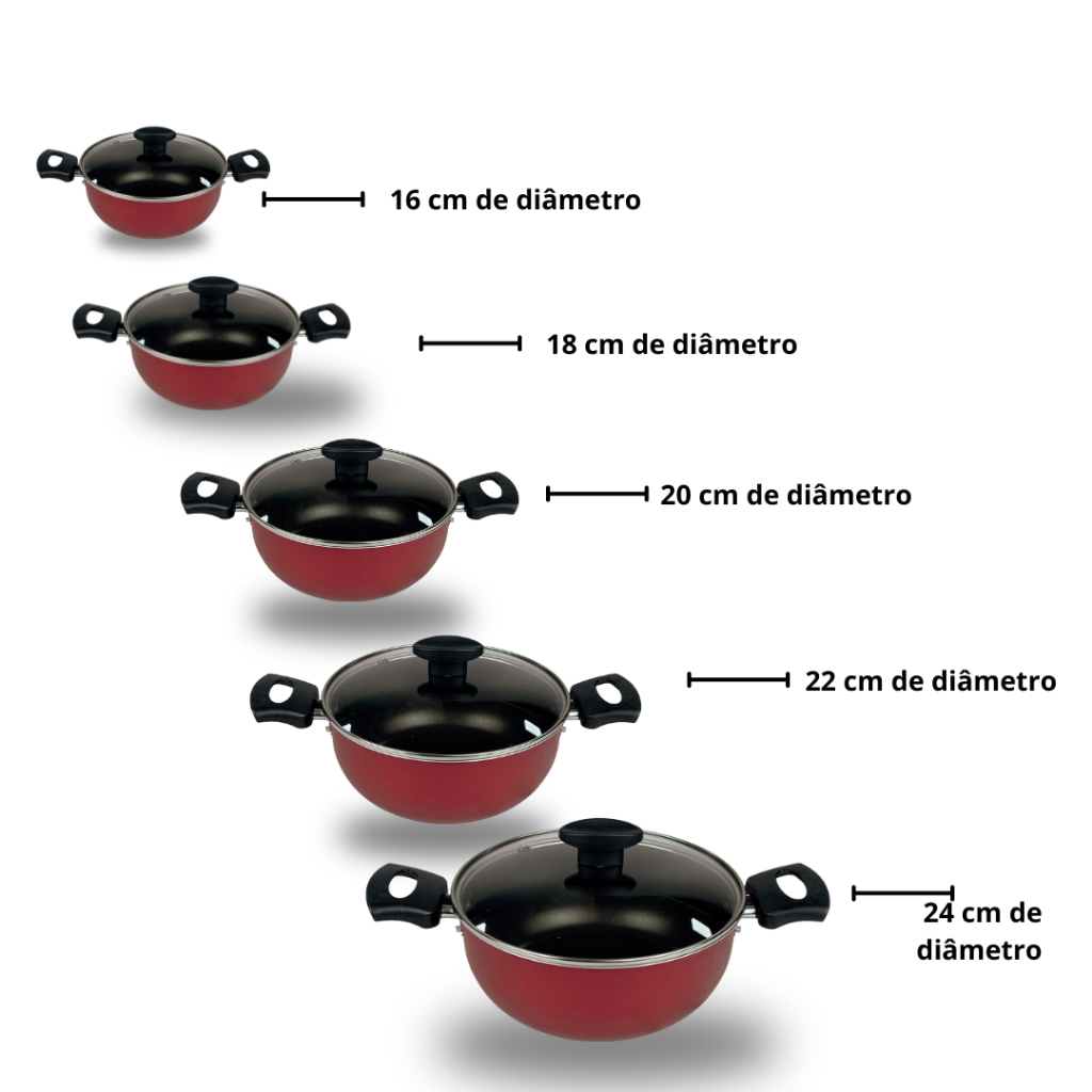 Jogo De Panelas Caçarola 16 à 24 Cor vinho e Preto 9 Peças.