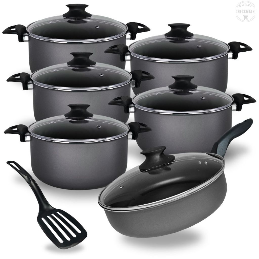 Jogo De Panelas Caçarolas 16 a 24 e Frigideira Alta 24 cm Com 5 Camadas De Antiaderente Teflon Grafite