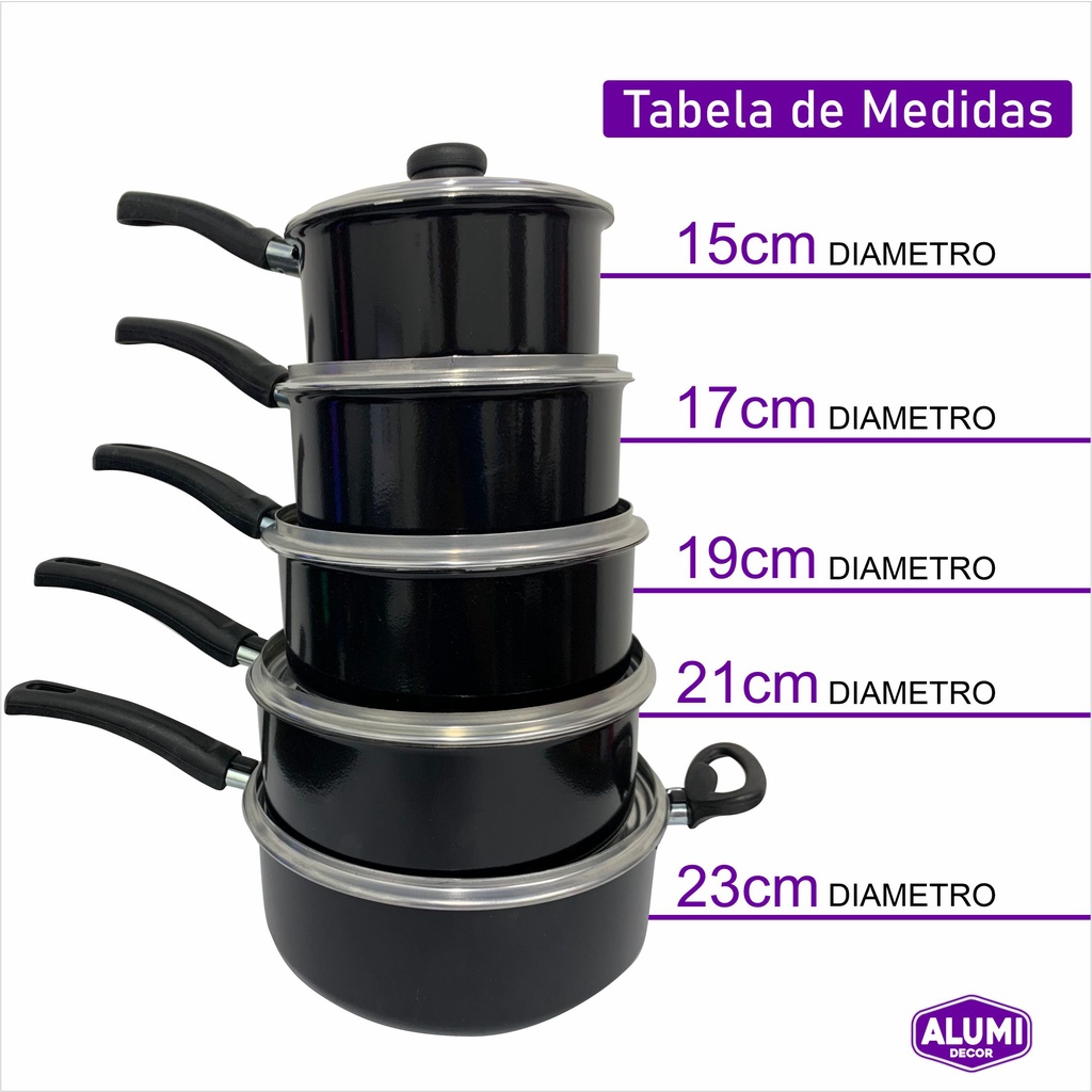 | Jogo De Panelas Caçarolas 5 peças - PRETA Alumínio este produto | R$ 96,20 | — | 4.8/5 | 5 |