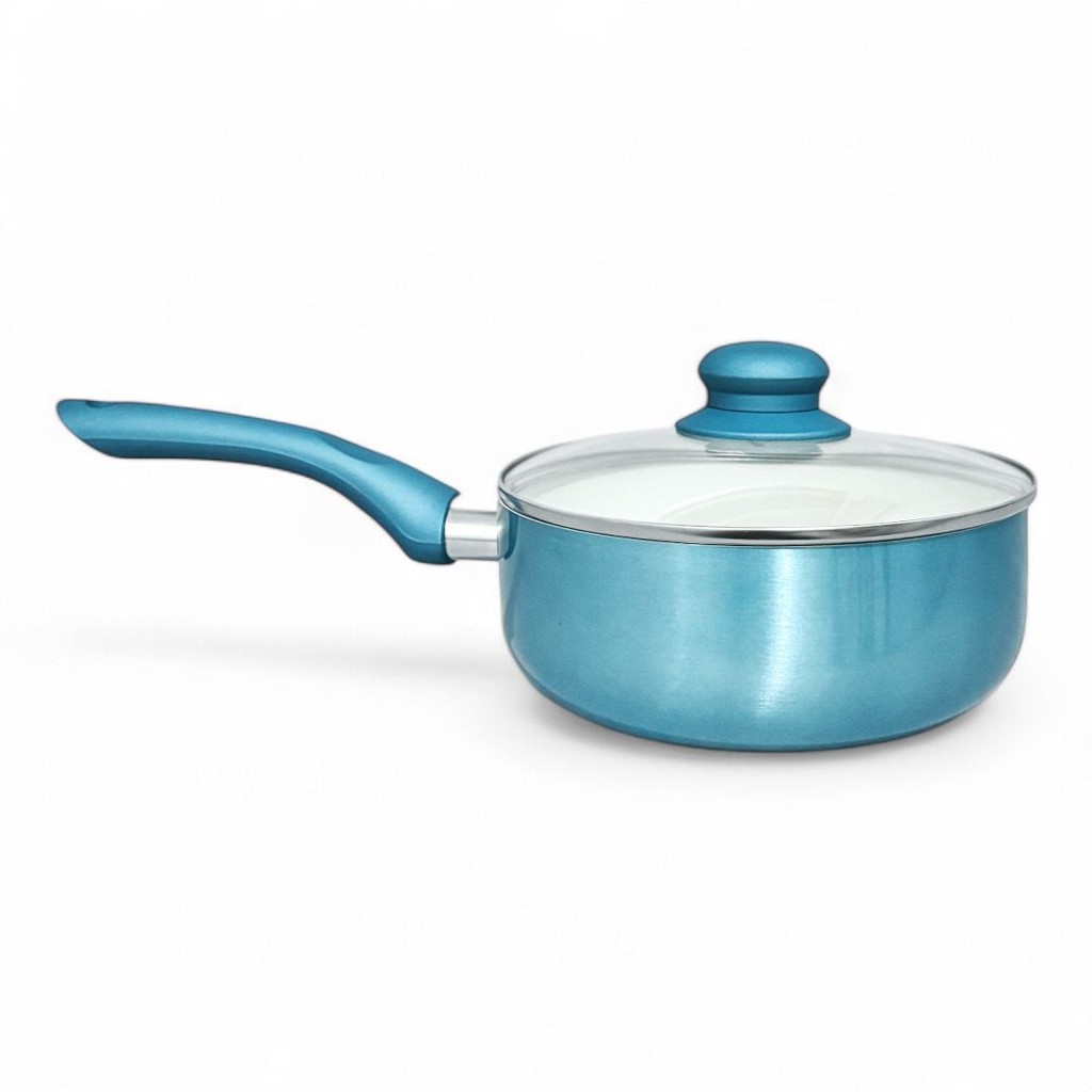 Jogo Panelas com 7 peças Modelo Genebra Baccani Composto por 1 Fervedor, 1 Frigideira, 2 panelas e 3 Caçarolas Cor Azul Metalizado com interno antiaderente cerâmico na cor creme. Livre dos os componentes PTFE e PFOA prejudiciais à saúde Servem para fogões à gás e elétrico. Não servem para fogões à indução Alumínio com Espessura 2mm Revestimento Antiaderente Cerâmico na cor creme. Não Gruda. Cabos e alças siliconadas resistentes ao calor Tampas em Vidro Temperado com saída de vapor e bordas em aço inoxidável. Fácil de limpar e podem ir à lava-louças Composição do Conjunto: 1 - Caneca, leiteira, fervedor Ø14cm 1 - Frigideira Ø 20cm 1 - Panela Ø 16cm 1 - Panela Ø 18cm 1 - Caçarola Ø 20cm 1 - Caçarola Ø 22cm 1 - Caçarola Ø 24cm Prepare suas refeições com muito mais praticidade com o conjunto de panelas Genebra. O Conjunto Genebra, possui revestimento cerâmico que não liberam os componentes PTFE e PFOA prejudiciais à saúde, não agridem o meio ambiente e o corpo humano. Seu fundo, possui uma perfeita distribuição e transferência no calor, cozinhando os alimentos em menos tempo e ajudando na redução dos gastos pois não é necessário utilizar o fogo alto. Cabos revestidos em soft toch combinando com a cor do conjunto, não esquentam e são mais bonitos Tampas em vidro temperado com saída de vapor e bordas em aço inoxidável. Produzidas em alumínio com 2 milímetros de espessura e com revestimento interno em cerâmica antiaderente capaz de conduzir o calor do fogo de maneira uniforme para acelerar o cozimento. - Cura A cura é um procedimento simples e rápido que ajuda a evitar a aderência dos alimentos e facilita a limpeza. Deve ser feita uma única vez, antes do primeiro uso. É muito importante seguir as instruções abaixo à risca e ter muita atenção durante o procedimento: - Lave e seque as panelas normalmente; - Coloque uma pequena quantidade de óleo - um fio já é o suficiente - dentro de cada uma das peças; - Espalhe bem esse óleo com a ajuda de um pincel ou papel, como se estivesse untando toda a parte interna das peças, inclusive a parte superior das alças; - É importante salientar que nenhuma quantidade de óleo deve ser passada do lado de fora da panela, em locais que entram em contato com o fogo; - Leve as peças ao fogo alto por apenas 1 minuto. Desligue o fogo e limpe as peças novamente com um papel ou toalha seca. Instruções para o uso; 1- Use somente espátula ou colher de madeira ou silicone. Utensílios de metal podem danificar a superfície antiaderente da panela. 2- Combine sempre o fundo da panela como tamanho da boca do fogão ou fonte de calor. 3- Use temperatura baixa ou média para melhores resultados pois a base das panelas, caçarolas e frigideira garante distribuição uniforme e eficiente do calor por toda superfície do metal. Evite aquecer o produto vazio; 4- Resfrie as panelas, caçarolas e frigideira antes de lavar. Remova as as manchas com água morna e sabão. Não use em hipótese alguma abrasivos para limpeza. 5- Não pode ser levadas ao forno ou micro-ondas. 6- Podem ser lavadas na lava-louças. - Limpeza: 1- Lave (inclusive antes do primeiro uso) todas as peças com detergente neutro e esponja macia. Não utilize utensílios abrasivos. 2- Enxágue e seque completamente a fim de remover qualquer resíduo de detergente e evitar manchas. Pode ir ao: • Fogão convencional; • Fogão elétrico; • Lava louças; Não pode ir ao: • Fogões à indução; • Forno; • Micro-ondas; - Cuidados: • Combine sempre o fundo da panela como tamanho da boca do fogão ou fonte de calor. • Quando não estiver em uso, não deixe a panela vazia sobre uma fonte de calor. • Use somente utensílios de madeira, nylon ou silicone não abrasivos para não riscar a superfície da conjunto. Produto enviado em caixa parda, sem desenhos ou fotos Dimensões Embalagem (C x L x A): 45 x 33 x 28cm Peso: 4,5 Kg Produto com garantia