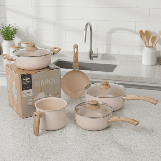 | Jogo De Panelas 8 Peças Teflon Antiaderente Frigideira Caçarola Fer... | R$ 132,90 | 40% | 4.7/5 | 5.1 mil |