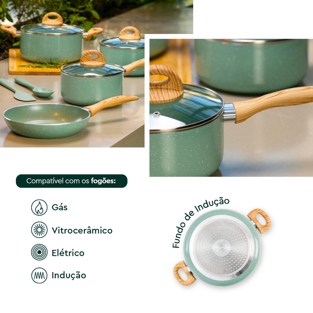 Jogo De Panelas Com Fundo De Indução - Brinox Ceramic Life - Botanika 6 Peças Verde