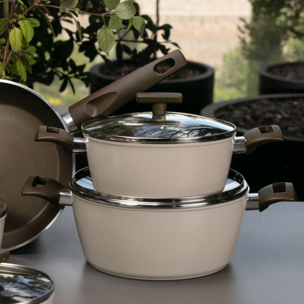 Jogo De Panelas Com Fundo De Indução Brinox Ceramic Life Organika 5 Peças Nata