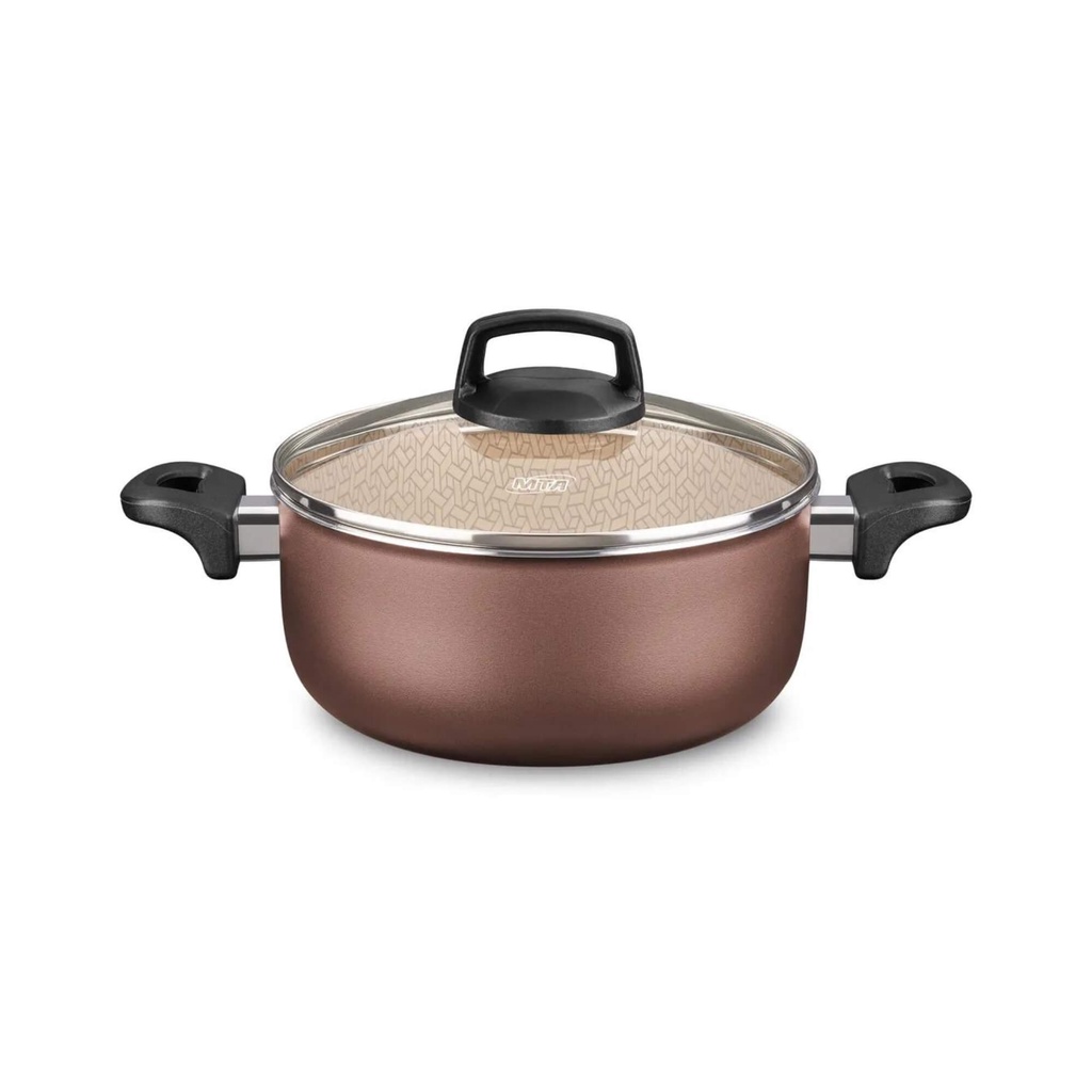 Conjunto/Jogo de Panelas 5 Peças Alumínio, Frigideira, Caçarola, Fervedor Florence Supra Chocolate MTA - 5667 Deixe sua cozinha ainda mais versátil, funcional e com alto desempenho com os Conjuntos de panelas Supra MTA em Alumínio com Revestimento interno e Externo Antiaderente Superflon Ultra e suas exclusivas 7 camadas de antiaderente! Além de lindas, as peças são essenciais para quem busca praticidade no preparo alimentar, garantem um cozimento rápido e uniforme dos alimentos e evita que eles grudem em sua superfície. Para que suas receitas sejam ainda melhor elaboradas, seus componentes acompanham tampas de vidro temperado com saída de vapor que proporcionam uma utilização ainda mais prática e eficiente, pois permitem a visualização da comida durante o preparo. E como segurança não pode faltar, suas alças e cabos são produzidas em baquelite antitérmico, reduzindo a propagação de calor. Além disso, elas podem ser utilizadas em fogões a gás, elétricos e vitrocerâmicos (resistência elétrica) e ir a máquina de lavar louças, agregando maior eficiência ao seu dia a dia. Características: - Marca: MTA - Referência: 5667 *Imagens Meramente Ilustrativas Especificações Técnicas: - Cor: Marrom Chocolate - Modelo: Florence - Alças: Baquelite / Antitérmicos - Tampas: Vidro Temperado com Saída de Vapor / Aro Aço Inox - Materiais: Alumínio Tipos de uso: - Fogão a gás - Elétrico - Vitrocerâmico - Lava-louça Conteúdo da embalagem: - 01x Panela com tampa de vidro n16 - 01x Panela com tampa de vidro n18 - 01x Caçarola com tampa de vidro n20 - 01x Frigideira Francesa n20 - 01x Fervedor n12
