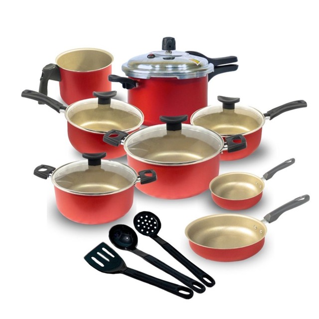 | Jogo de Panelas Munique Teflon 11 Pçs Panela de pressão Fech. Exte... este produto | R$ 302,97 | 5% | 4.6/5 | 111 |