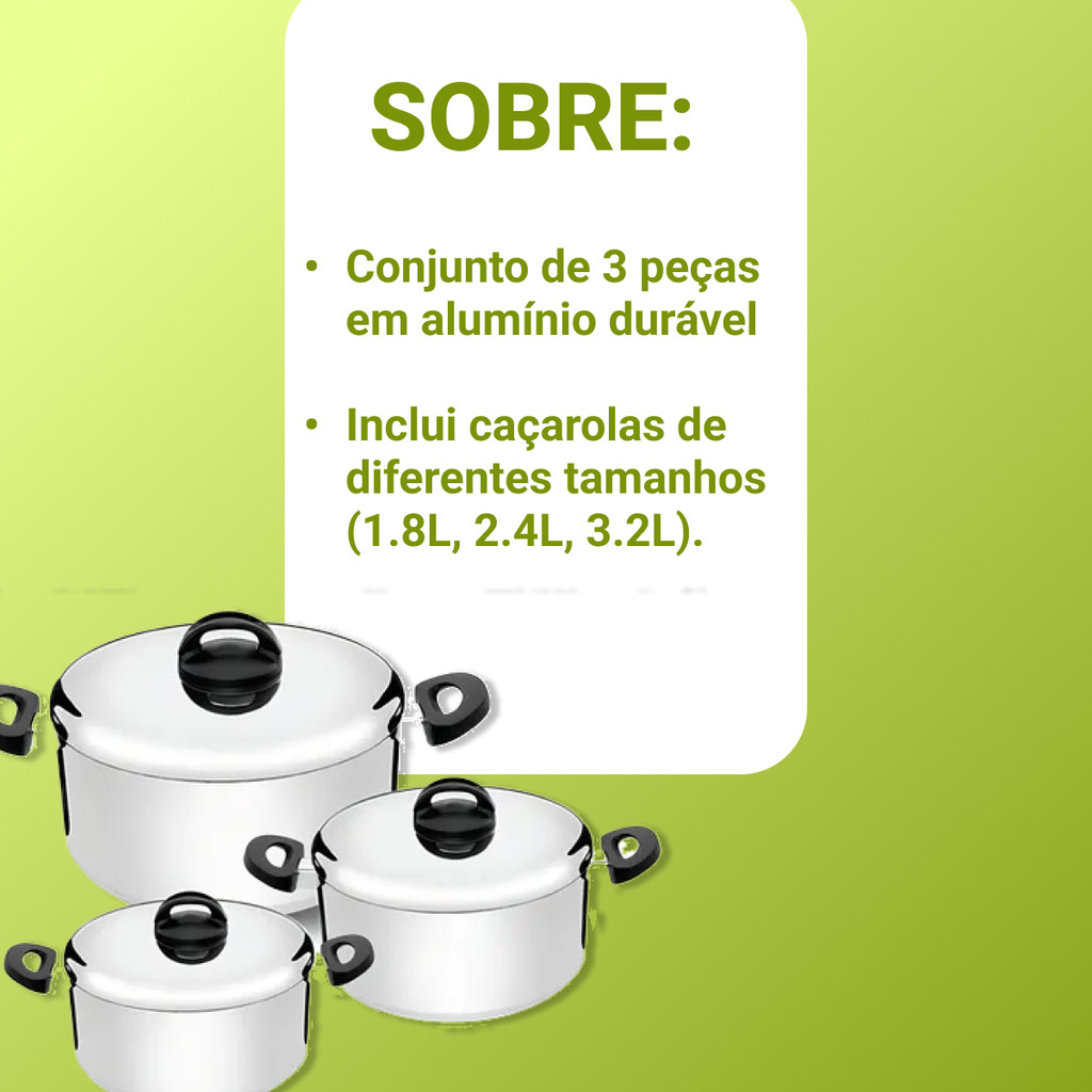 Jogo De Panelas Nigro Eterna 3 Peças Alumínio Polida Grossa Panela