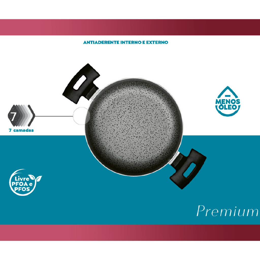 Jogo de Panelas em Alumínio Antiaderente Panelux Premium ST Cereja - 7 Peças Descrição O Conjunto de panelas alumínio 7 pcs antiaderente Cereja Premium ST é a escolha perfeita para quem busca um produto de qualidade, seguro, prático e saudável. Com 7 peças, ele é ideal para preparar todos os tipos de refeições, desde um café da manhã rápido até um jantar sofisticado. Eleve suas habilidades culinárias para um novo patamar com o Conjunto de Panelas em Alumínio 7 Peças Antiaderente Premium ST Cereja da Panelux! Prepare-se para impressionar sua família e amigos com pratos deliciosos e incríveis. Características: - Estrutura em Alumínio 1,6mm - Revestimento Interno e Externo Antiaderente - Possui 7 Peças - Tampas em Vidro Temperado - Cabos e Alças em Baquelite Anti-Térmico - Uso em Fogões a Gás - Elétrico e Vitro-Cerâmico - 7 Camadas de Alumínio Benefícios: - Todas produzidas em alumínio, proporcionando um cozimento rápido e uniforme devido sua espessura. - Seu revestimento possui alto poder de antiaderência e ainda garante maior resistência à abrasão, prolongando sua vida útil em 5.000 ciclos. - Seus cabos produzidos em baquelite antitérmico, que garante segurança durante o manuseio e evita queimaduras. - Um item prático, fácil de limpar e que pode ir à máquina de lavar louças. - Corpo em Alumínio com Revestimento Antiaderente - Tampas em Vidro Temperado com Saída a Vapor Ficha Técnica: - Marca: Panelux - Produto: Jogo de Panelas - Linha Comercial: Premium ST - Cód/Modelo: 5002503 - Código de Barras: 7898147770084 - Material: Alumínio - Vidro Temperado - Baquelite Anti-Térmico - Cor: Cereja - Nº de Peças: 7 Peças - Espessura das Peças: 1,6mm - Revestimento: Externo e Interno Antiaderente - Tipos de Fogão: Gás - Elétrico - Vitro-Cerâmico - Dimensão da Embalagem: 13,5 x 59 x 65cm (A x L x C) - Peso da Caixa: 5,30kg Contéudo: - 01 Caçarola 22cm - 01 Caçarola 20cm - 01 Panela 18cm - 01 Panela 16cm - 01 Frigideira Francesa 20cm - 01 Fervedor 14cm - 01 Frigideira Funda 22