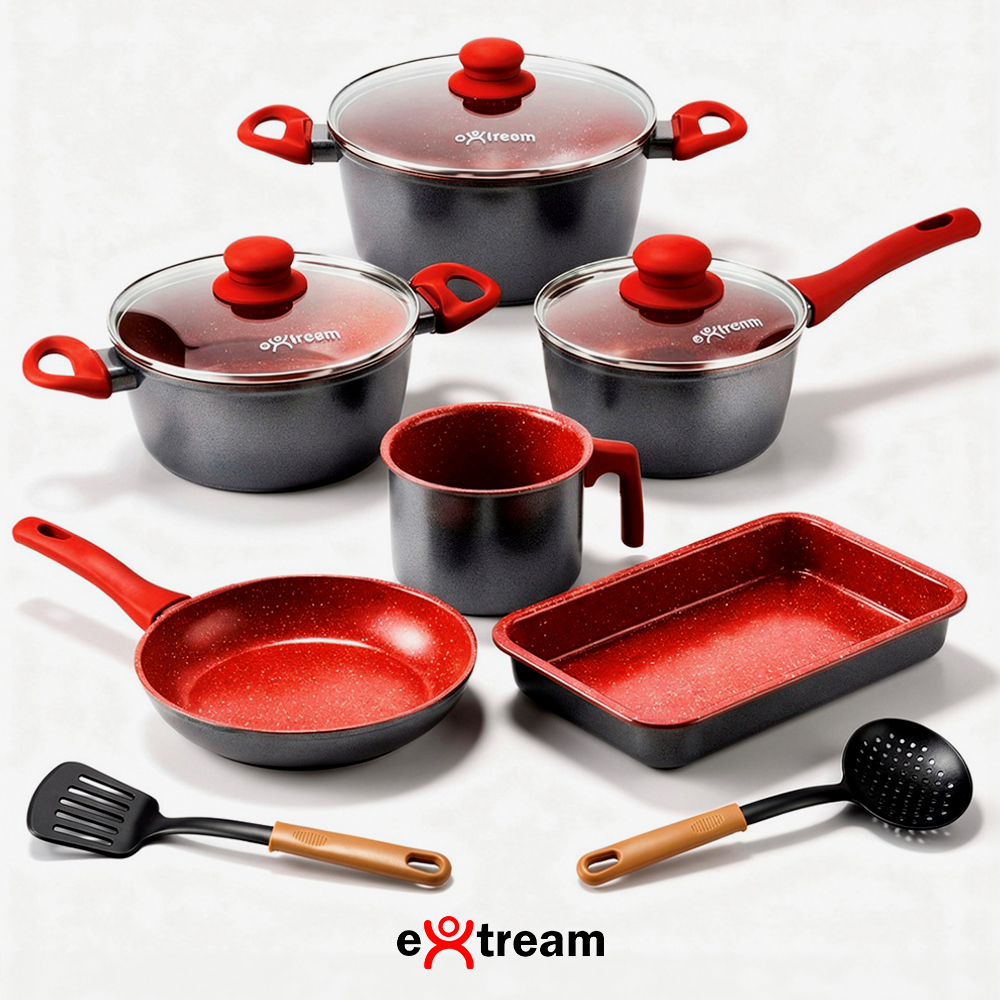 Jogo de Panelas Revestimento Ceramica Antiaderente Indução 8 peças Extream