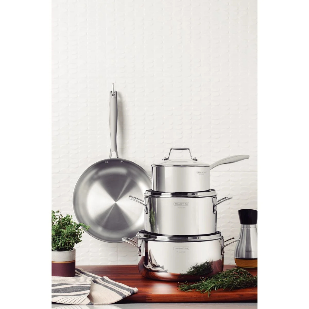 Jogo de Panelas Tramontina 4 Peças Grano em Aço Inox com Corpo Triplo e Tampa De Vidro