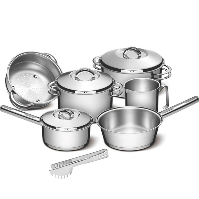 Tramontina é sinônimo de durabilidade e praticidade. O Jogo de Panelas Tramontina em Aço Inox Fundo Triplo 6 Peças da linha Solar une elegância com segurança. Totalmente feita em inox, não solta resíduos nos alimentos e seu fundo triplo (aço inox + alumínio + aço inox) distribui o calor uniformemente, proporcionando um cozimento mais rápido, economizando energia e deixando os alimentos aquecidos por mais tempo. Fáceis de limpar e altamente duráveis, as panelas podem ser lavadas diariamente e ser utilizadas em todos os fogões. O Jogo de Panelas Tramontina em Aço Inox Fundo Triplo vai renovar e dar beleza a sua cozinha! Características: -Mais saudável: por ser feita de aço inoxidável, a panela Tramontina não libera nenhum tipo de resíduo nas suas receitas. -Fácil de usar: uma panela prática para todas as suas receitas e que faz bonito em qualquer tipo de fogão: gás, elétrico, vitrocerâmico e indução. Ainda possui tampa com saída de vapor e encaixe perfeito. -Mais durável: o inox Tramontina é uma matéria-prima nobre, resistente e que vai fazer bonito por muito mais tempo na cozinha. -Economiza tempo e energia: o segredo está no fundo triplo (aço inox + alumínio + aço inox), que distribui o calor uniformemente, proporcionando um cozimento mais rápido. Por isso, você pode manter o fogo baixo durante todo o preparo e, assim, poupar energia. Além disso, a panela toda em aço inox pode ir ao forno para gratinar ou finalizar pratos, na temperatura máxima de 260°C. -Fácil de limpar: deixar sua panela brilhando é simples, você só precisa de água, sabão e uma esponja macia. Se preferir, é só colocar na máquina de lavar. Componentes: 1 62501160 Panela Tramontina Solar em Aço Inox Fundo Triplo com Tampa e Cabo 16 cm 1,40 L 1 62503240 Caçarola Tramontina Solar Rasa em Aço Inox Fundo Triplo com Tampa e Alça 24 cm 4,70 L 1 62504200 Caçarola Tramontina Solar Funda em Aço Inox Fundo Triplo com Tampa e Alça 20 cm 3,60 L 1 62510200 Cozi-Vapore Tramontina Solar em Aço Inox com Alças 20 cm 3,2 L 1 62650200 Frigideira Funda Tramontina Allegra sem tampa em Aço Inox com Fundo Triplo 20 cm 2,2 L 1 62664120 Fervedor Tramontina Allegra em Aço Inox 12 cm 1,4 L 1 63800600 Pegador para massa de aço inox Garantia do Fabricante: 90 dias Recomendações: - Antes de utilizar o produto, remover as eventuais etiquetas e lavar com água quente e detergente. - Use uma fonte de calor brando para evitar que o alimento grude no fundo da caçarola. O fundo triplo distribui uniformemente o calor, não sendo necessário o fogo alto. E, além disso, você economiza energia. - Quando a caçarola for utilizada no fogão a gás, a chama não deve ultrapassar a base da caçarola. No caso de uso de chapa elétrica, a chapa deverá ter diâmetro igual ou inferior ao da caçarola. - Sempre dissolva o sal em água fervendo ou com os alimentos, mexendo os ingredientes no início do cozimento. - Não aqueça o alimento colocando uma caçarola do mesmo diâmetro sobre a outra. Esse procedimento é perigoso, pois cria vácuo e impossibilita a retirada do mesma. - Se a tampa da caçarola de aço inox Tramontina ficar presa pelo efeito do vácuo durante o resfriamento, basta puxar ou aquecer novamente até neutralizar o efeito do vácuo. - As alças de inox aquecem durante o cozimento. Aconselhamos o uso de luvas durante o manuseio. - Alguns alimentos que possuem amido, como massa e arroz, poderão deixar manchas na parte interna da caçarola durante o cozimento. Para remover facilmente as manchas, passe um pano umedecido com suco de limão ou vinagre, ou use a Pasta para Polir e Remover Manchas Tramontina. - Evite deixar alimento na caçarola por muito tempo; o sal também pode provocar manchas. - Para que a caçarola de aço inox fique sempre bonita e com brilho, recomendamos que seja lavada somente com detergente e esponja. A Tramontina desenvolveu uma pasta especial para polir e remover manchas nos produtos de aço inoxidável, que está disponível nos principais pontos de venda. - Depois da lavagem, sempre que possível, enxágue a caçarola com água quente e seque-a imediatamente, para que ela mantenha o brilho original, pois o cloro e as substâncias contidas na água podem deixar manchas na caçarola. - Pode ir ao forno em temperatura máxima de 260°C, podendo haver mudança na coloração. - Não deixe a caçarola vazia sobre uma fonte de calor. Deixe caçarolas quentes somente em superfícies resistentes ao calor.