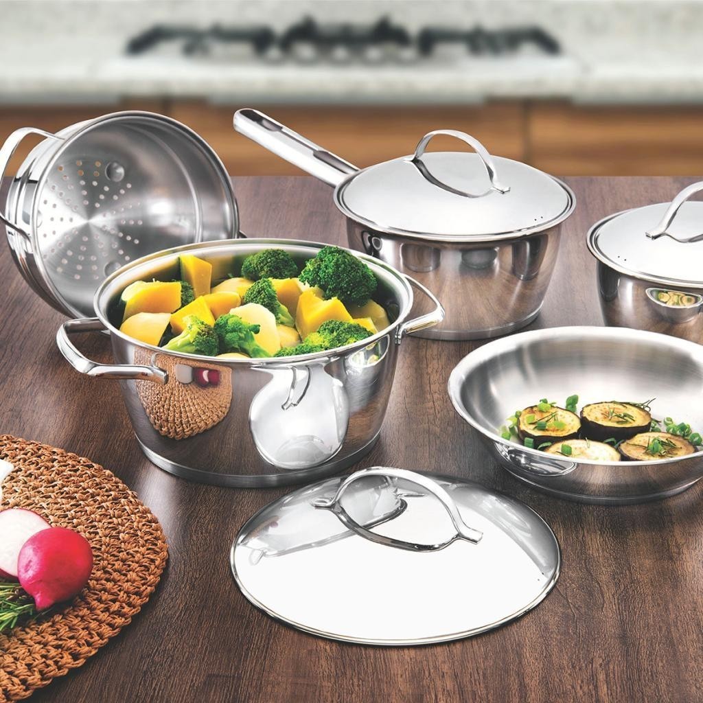 Descrição: - O design clean da linha Allegra foi criado para tornar mais simples as tarefas de forno e fogão. - Totalmente feitas em aço inox, por isso não solta nenhum resíduo nos alimentos, mantendo-os saudáveis. - Altamente durável, mantém as características originais, preservando a beleza, a higiene e a durabilidade do material. - O fundo triplo (aço inox + alumínio + aço inox) distribui o calor uniformemente, proporcionando um cozimento mais rápido e uniforme, economizando energia e deixando os alimentos aquecidos por mais tempo. - Possui design diferenciado e moderno, com acabamento em alto brilho. - Desenho limpo e sem cantos torna a limpeza mais fácil. - Tampa com saída de vapor e encaixe perfeito. - Podem ser lavadas diariamente na máquina de lavar louças. - Podem ser utilizadas nos fogões: gás, elétrico, vitrocerâmico e indução. Características: - Mais saudável: por ser feita de aço inoxidável, a panela Tramontina não libera nenhum tipo de resíduo nas suas receitas. - Fácil de usar: uma panela prática para todas as suas receitas e que faz bonito em qualquer tipo de fogão: gás, elétrico, vitrocerâmico e indução. Ainda possui tampa com saída de vapor e encaixe perfeito. - Mais durável: o inox Tramontina é uma matéria-prima nobre, resistente e que vai fazer bonito por muito mais tempo na cozinha. - Economiza tempo e energia: o segredo está no fundo triplo (aço inox + alumínio + aço inox), que distribui o calor uniformemente, proporcionando um cozimento mais rápido. - Por isso, você pode manter o fogo baixo durante todo o preparo e, - assim, poupar energia. Além disso, a panela toda em aço inox pode ir ao forno para gratinar ou finalizar pratos, na temperatura máxima de 260°C. - Fácil de limpar: deixar sua panela brilhando é simples, você só precisa de água, sabão e uma esponja macia. Se preferir, é só colocar na máquina de lavar. Orientações de Uso: - Antes de utilizar o produto, remover as eventuais etiquetas e lavar com água quente e detergente. - Use uma fonte de calor brando para evitar que o alimento grude no fundo da panela. O fundo triplo distribui uniformemente o calor, não sendo necessário o fogo alto. E, além disso, você economiza energia. - Quando a panela for utilizada no fogão a gás, a chama não deve ultrapassar a base da panela. No caso de uso de chapa elétrica, a chapa deverá ter diâmetro igual ou inferior ao da panela. - Sempre dissolva o sal em água fervendo ou com os alimentos, mexendo os ingredientes no início do cozimento. - Se a tampa da panela de aço inox Tramontina ficar presa pelo efeito do vácuo durante o resfriamento, basta puxar ou aquecer novamente até neutralizar o efeito do vácuo. - O cabo de inox aquece durante o cozimento. Aconselhamos o uso de luvas durante o manuseio. - Alguns alimentos que possuem amido, como massa e arroz, poderão deixar manchas na parte interna da panela durante o cozimento. Para remover facilmente as manchas, passe um pano umedecido com suco de limão ou vinagre, ou use a Pasta para Polir e Remover Manchas Tramontina. - Evite deixar alimento na panela por muito tempo; o sal também pode provocar manchas. - Para que a panela de aço inox fique sempre bonita e com brilho, recomendamos que seja lavada somente com detergente e esponja. A Tramontina desenvolveu uma pasta especial para polir e remover manchas nos produtos de aço inoxidável, que está disponível nos principais pontos de venda. - Depois da lavagem, sempre que possível, enxágue a panela com água quente e seque-a imediatamente, para que ela mantenha o brilho original, pois o cloro e as substâncias contidas na água podem deixar manchas na panela. - Podem ir ao forno em temperatura máxima de 260°C, podendo haver mudança na coloração. Ficha Técnica: - Marca: Tramontina - Produto: Jogo de Panelas - Linha Comercial: Allegra - Máquina de Lavar Louça: Sim - Material: Aço Inox - Nº de Peças: 5 Peças - Fundo Triplo: Sim - Tipos de Fogão: Gás - Elétrico - Vitrocerâmico - Indução - Dimensão: 436x264x212 mm - Peso: 3,56 kg Itens Adicionais: Mais Conjunto de Utensílios de Cozinha Multiuso em Aço Inox 5 Peças ( Utensílios não pertencem à marca Tramontina ) Descrição Lindo Kit com 5 peças, ideal para auxiliar várias tarefas na sua cozinha por ser muito completo e multi-utilidades. Feitos totalmente em aço inox, não soltam nenhum resíduo. São altamente duráveis o que mantém as características originais, preservando a beleza e higiene do material. Especificações - Material: Aço Inoxidável - Peso kit (Kg): 0,380kg - Utilidades: Gourmet - Nº Peças: 5 Peças - Funções: Servir - Pegar - Amassar Recomendações de uso: Durante a Lavagem, use apenas sabão ou detergente e uma Esponja Macia. enxágue Bem e enxugue imediatamente, Caso contrario poderão surgir manchas no Inox. Não utilizar palha de aço, pois pode danificar os produto.