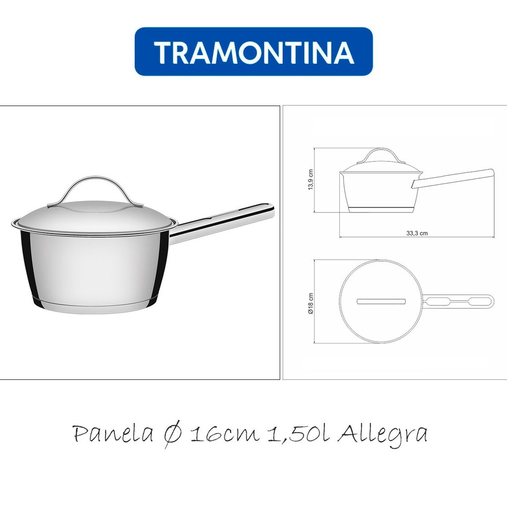 Jogo de Panelas Tramontina Allegra em Aço Inox com Fundo Triplo de indução 5 Peças