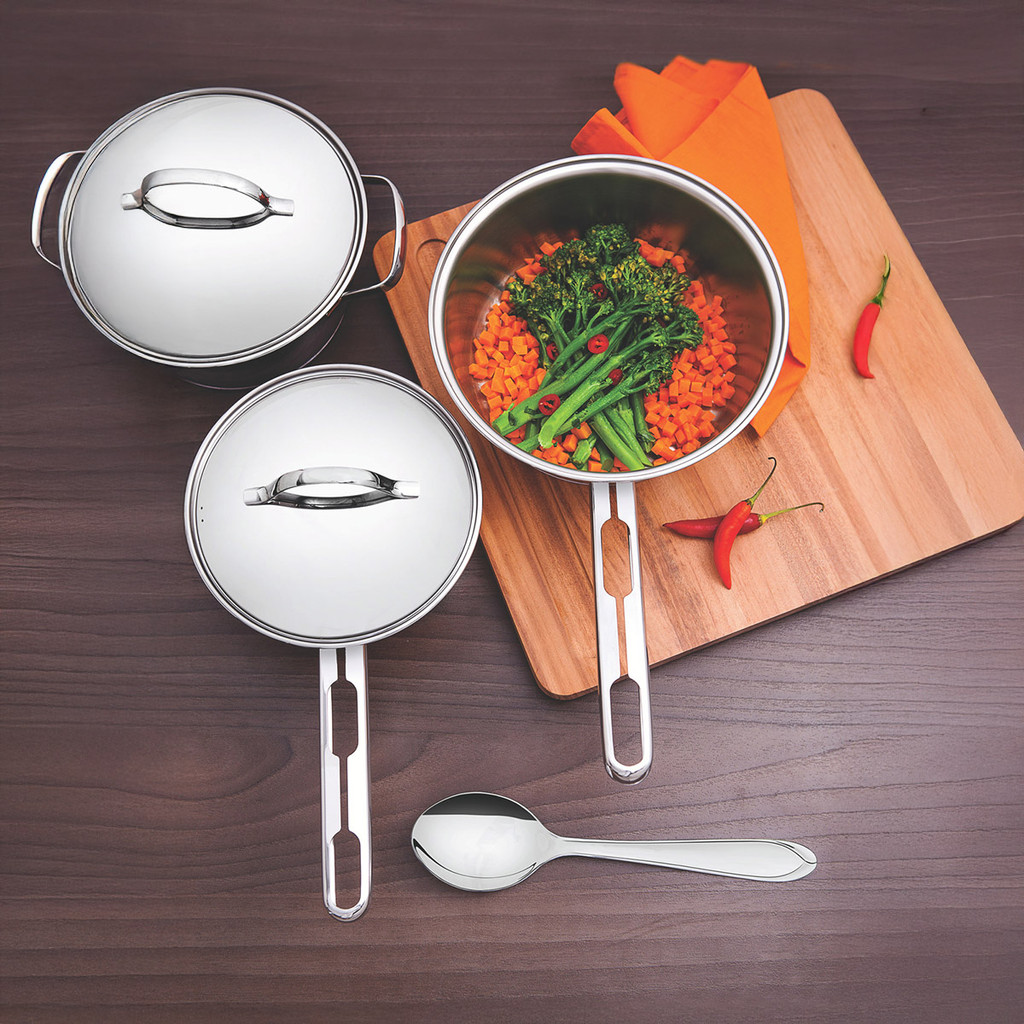 Jogo de Panelas Tramontina Allegra em Aço Inox com Fundo Triplo para Indução 5 peças