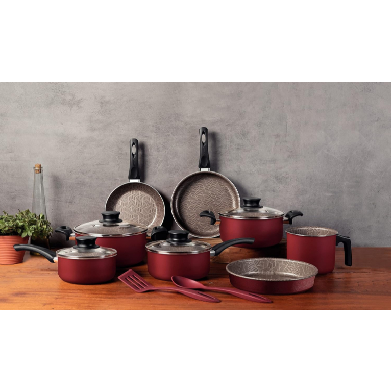 Jogo de Panelas Tramontina Paris Texture Antiaderente Cereja 10 Peças