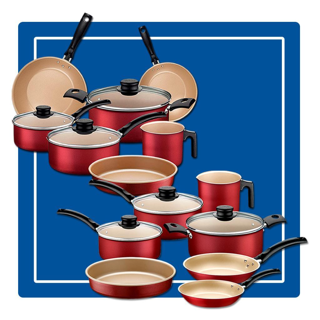 Jogo de Panelas Tramontina Turim Antiaderente 14 peças Vermelha com Assadeiras e Fervedores