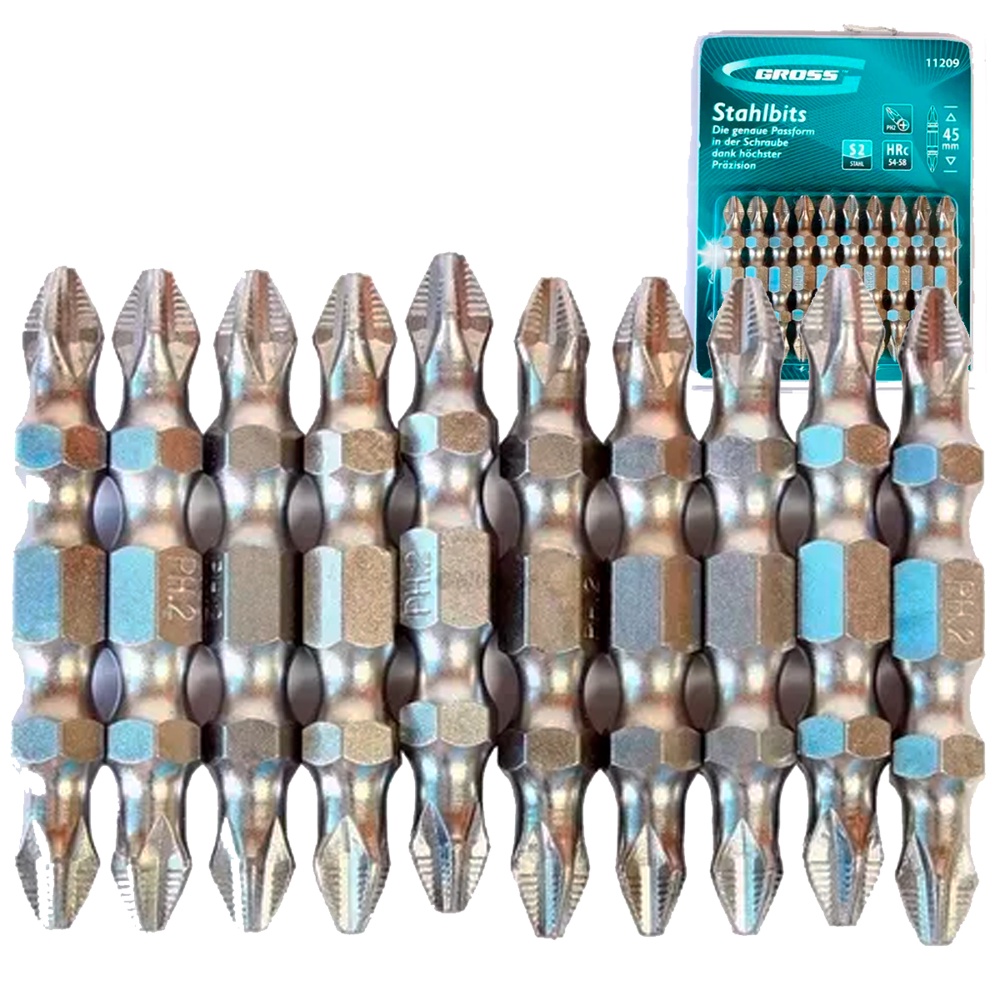 Jogo De Pontas Bits Dupla 45mm S-2 PH X PH Kit 10 Pçs Profissional