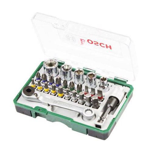 Kit com bits, soquetes e adaptador com 27 Peças. Kit acompanha estojo plástico qrganizador que facilita o transporte e o armazenamento das peças, indicação com cores nos bits e soquetes, itens forjados em aço de alta resistência para uso profissional.Conteúdo da Embalagem:- 1 Estojo- 19 Bits de 25 mm: Ph 1 / 2 / 2 / 3, Pz 1 / 2 / 3, Fen 4 / 5 / 6, Torx 10 / 15 / 20 / 25 / 30, Hex 3 / 4 / 5 / 6, - 1 Minichave de catraca- 1 Adaptador multi-fit- Soquetes 6 / 7 / 8 / 10 / 13 mm + adaptadorCódigo de Fábrica: 2607017160000.