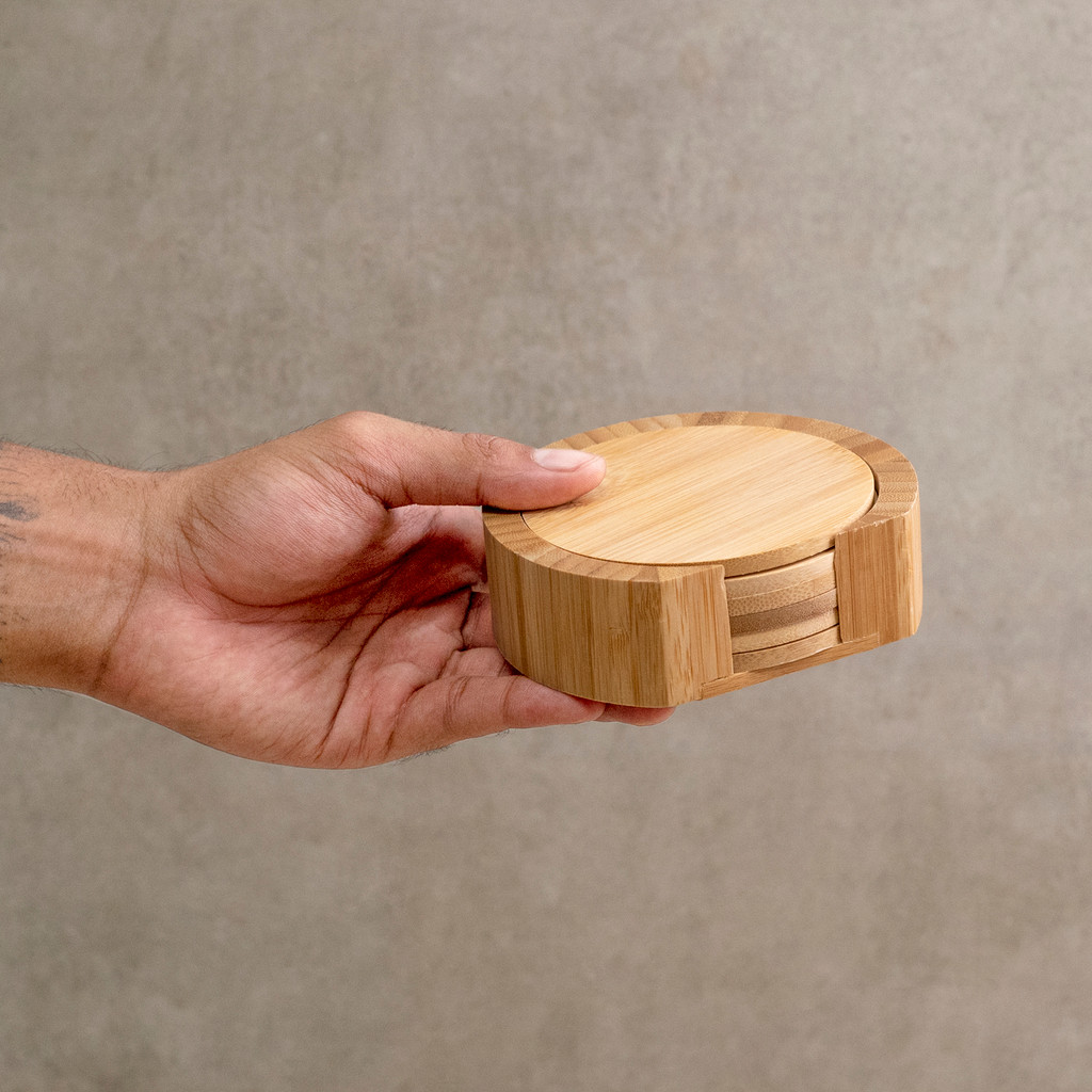 Jogo de Porta Copos Redondo Em Bambu 6pcs - Oikos