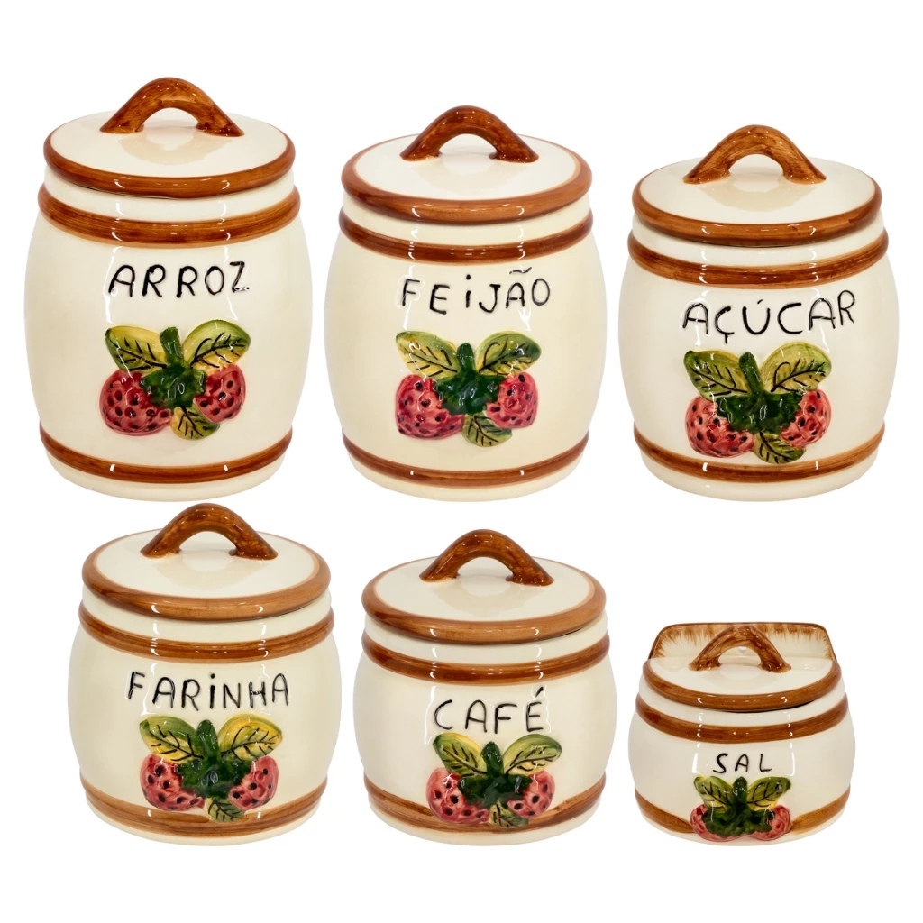 Jogo de Potes Mantimento Morango 6 Peças – Decoração Cozinha