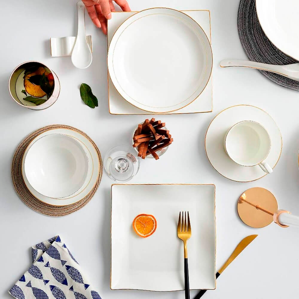 O Jogo de Pratos de Sobremesa em Porcelana Branco Borda Dourada 4 peças Royal 20cm - Hauskraft O jogo pratos de sobremesa da Hauskraft, da coleção Royal, possui 20cm de diâmetro, com um design clean e discreto mas sem deixar de lado a elegância. O prato é elaborado na cor branca com borda dourada, levando a sua mesa simplicidade e extravagância com seu fino acabamento já que suas peças são produzidas em porcelana de altíssima qualidade e durabilidade em formato redondo. Os pratos de sobremesa branco fio de ouro, vão trazer à sua mesa posta mais charme e sofisticação nos momentos de suas refeições. É um item indispensável para quem preza por uma boa e clássica mesa posta. Dimensões: 20cm de diâmetro x 1,5cm de altura Características: Marca: Hauskraft Linha: Royal Referencia: PCLN206/4 Material: Porcelana Quantidade: 4 peça Cor: Branco com borda dourada Imagens ilustrativas.
