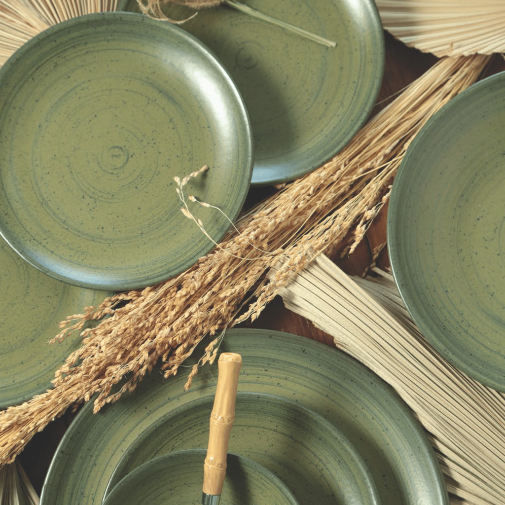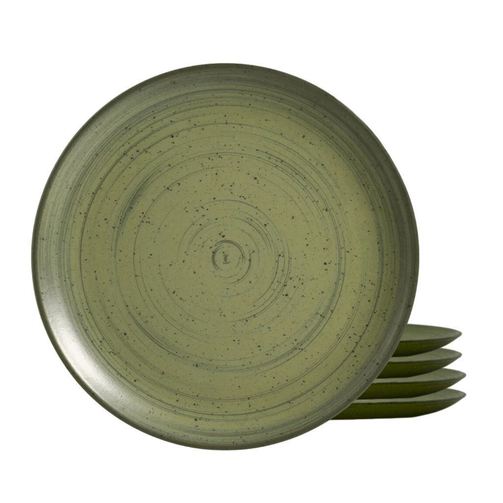 Jogo De Pratos Fundo Cerâmica Kit 4 Peças 25cm Kya Olive Alleanza Rustico