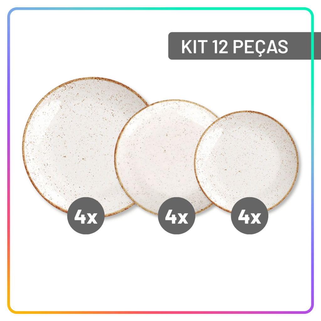 Jogo de Pratos Jantar Rústico Marrom Tramontina Porcelana Conjunto de Pratos Raso, Fundo e Sobremesa Opções de Kits