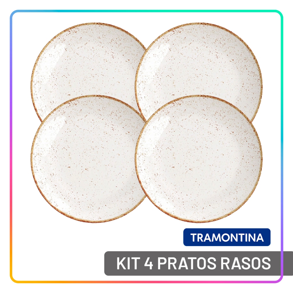Jogo de Pratos Rasos Tramontina 25 cm Rústico Marrom Porcelana Decorada Conjunto de Pratos 4 Peças