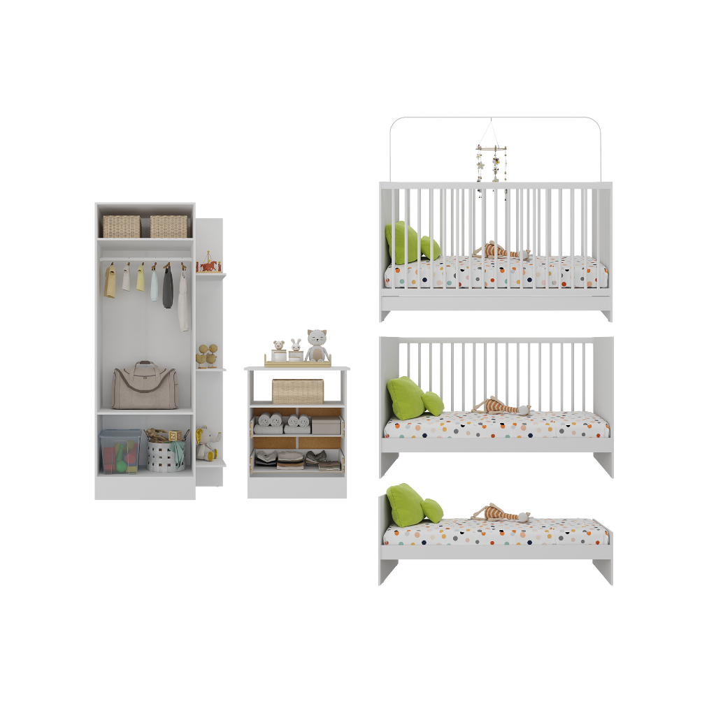 Jogo De Quarto Infantil Trevalla Móveis Pom Pom 3 Peças e 3 ANOS de Garantia