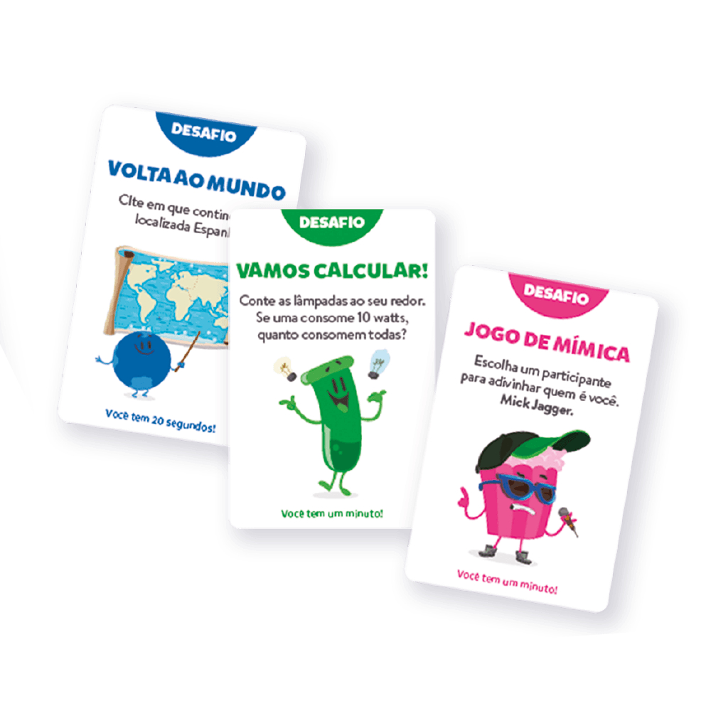 O Perguntados Especialistas chegou com perguntas ainda mais instigantes para desafiar qualquer sabe-tudo! Está com os conhecimentos em dia? Ponha-os à mesa e prove que é um verdadeiro Especialista no universo de Perguntados! Composição: 180 Cartas de Perguntas - 84 Cartas Desafio - 72 Cartas Curinga - 12 Cartas Personagens - 01 tabuleiro - 01 cartela de punchboard com peões, fichas. - 01 Manual de regras - Conjunto de 6 suportes plásticos - 2 dados