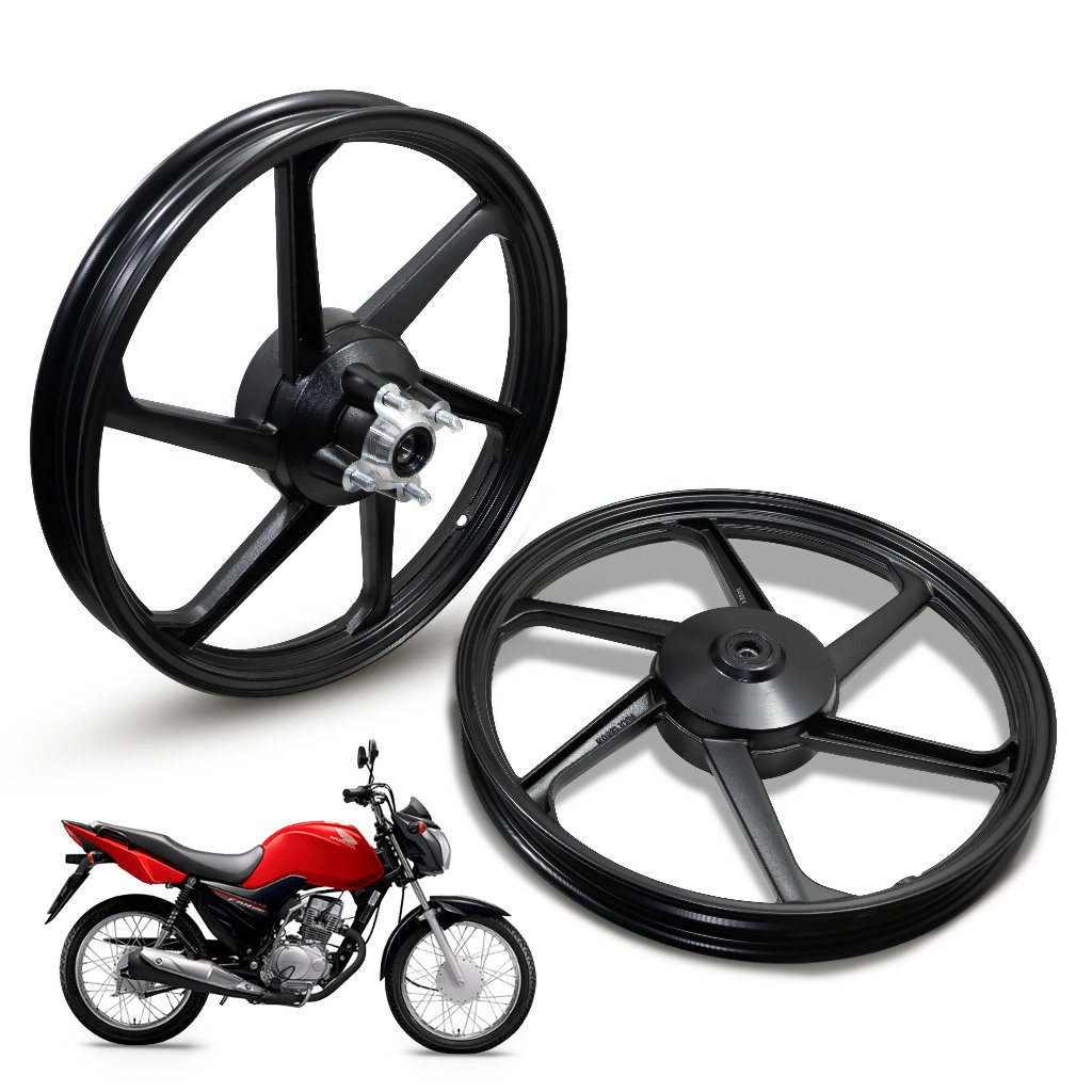 Jogo de Rodas de Liga Leve CG 125 Fan 2009 a 2012 Freio a Lona Preta 6 Palitos (Par)
