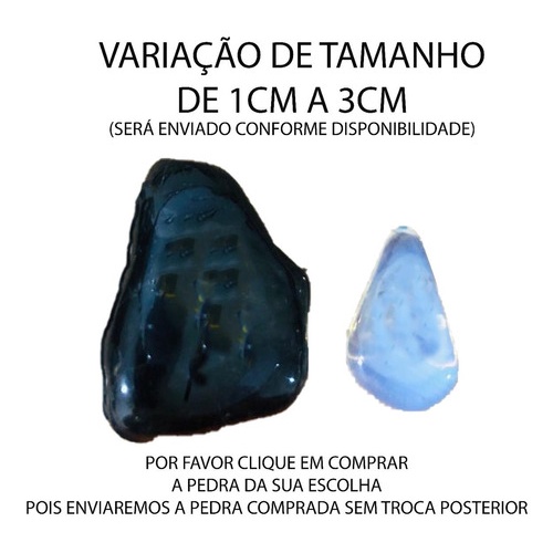 Não da para escolher os tamanhos, no pacote podem conter pedras com tamanhos de 1 a 3 cm e formatos diversos o que varia de pacote para pacote . Observação: Os produtos de origem natural podem ter variações de coloração e tamanho, em relação à imagem do mostruário, entretanto, terão a mesma qualidade. Os produtos por serem "Pedras Roladas" podem conter fissuras naturais, ranhuras naturais, veios naturais, tendo em vista seu processo de rolamento.