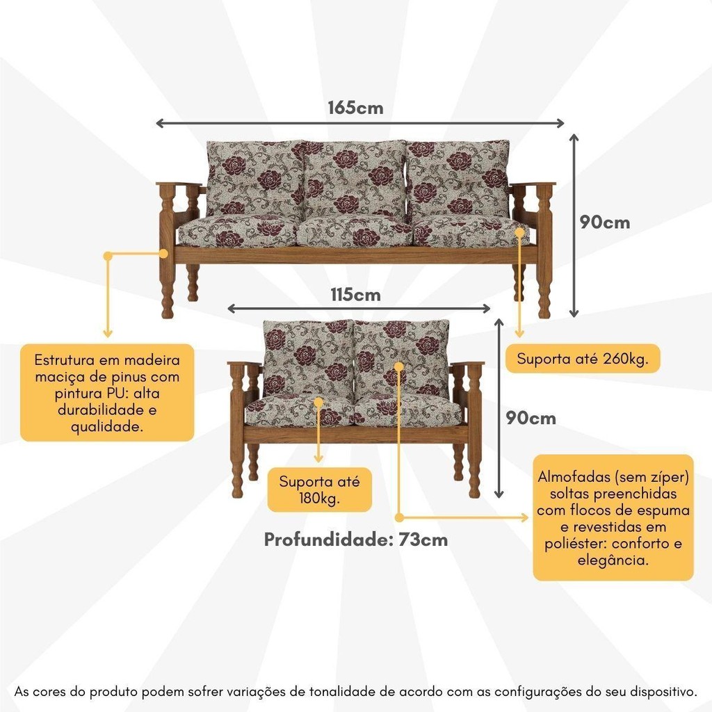 Jogo de Sofá Madeira Maciça 2 e 3 Lugares Liz Multimóveis CR7004