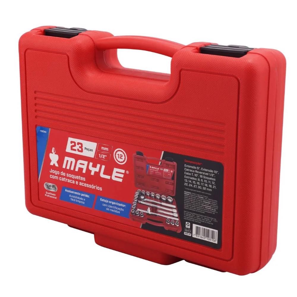 Jogo de Soquete Estriado Encaixe 1/2 Pol de 8 à 32 MM com 23 Peças MAYLE