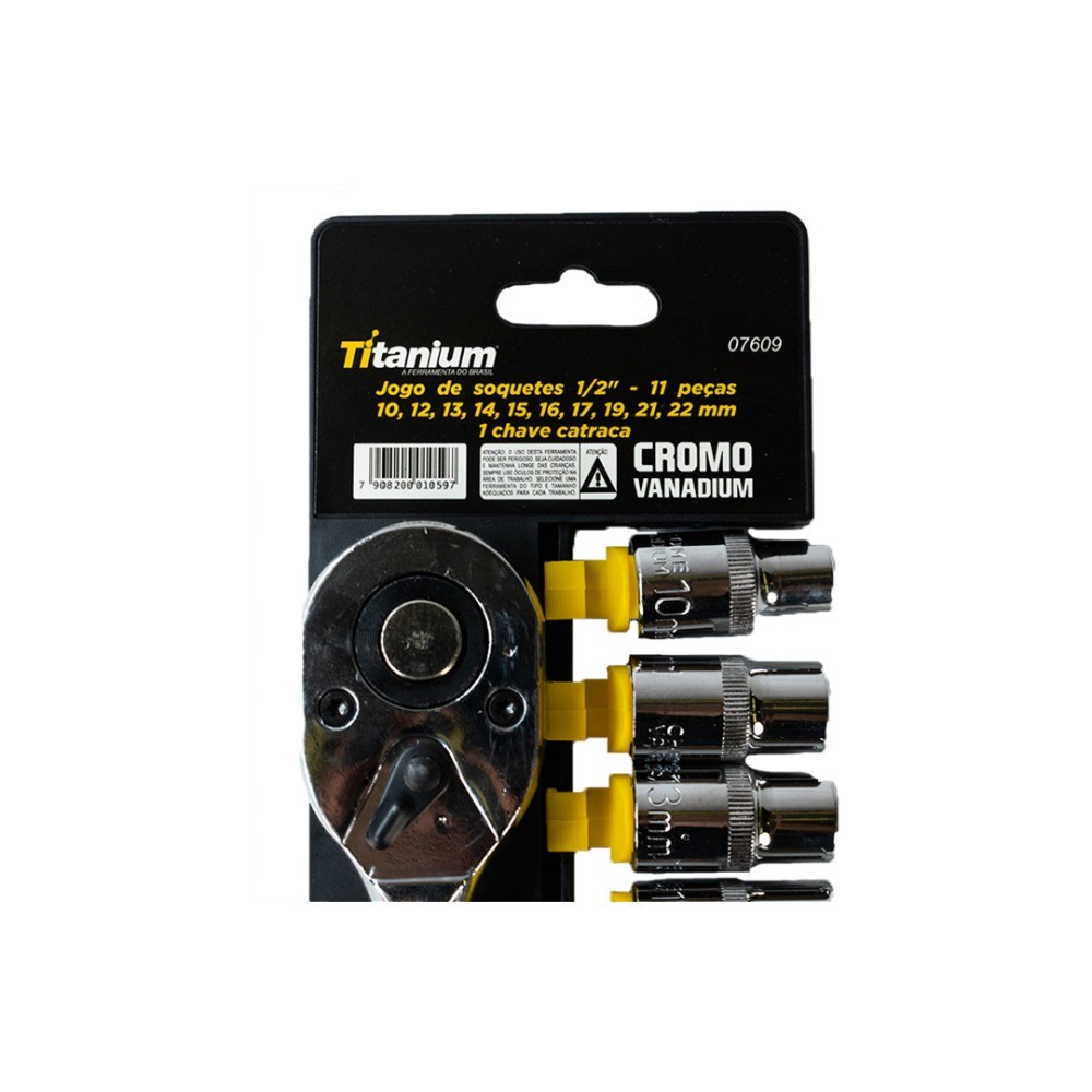 Jogo de soquete sextavado 10 a 22 mm encaixe 1/2" com 11 peças 07609 Titanium