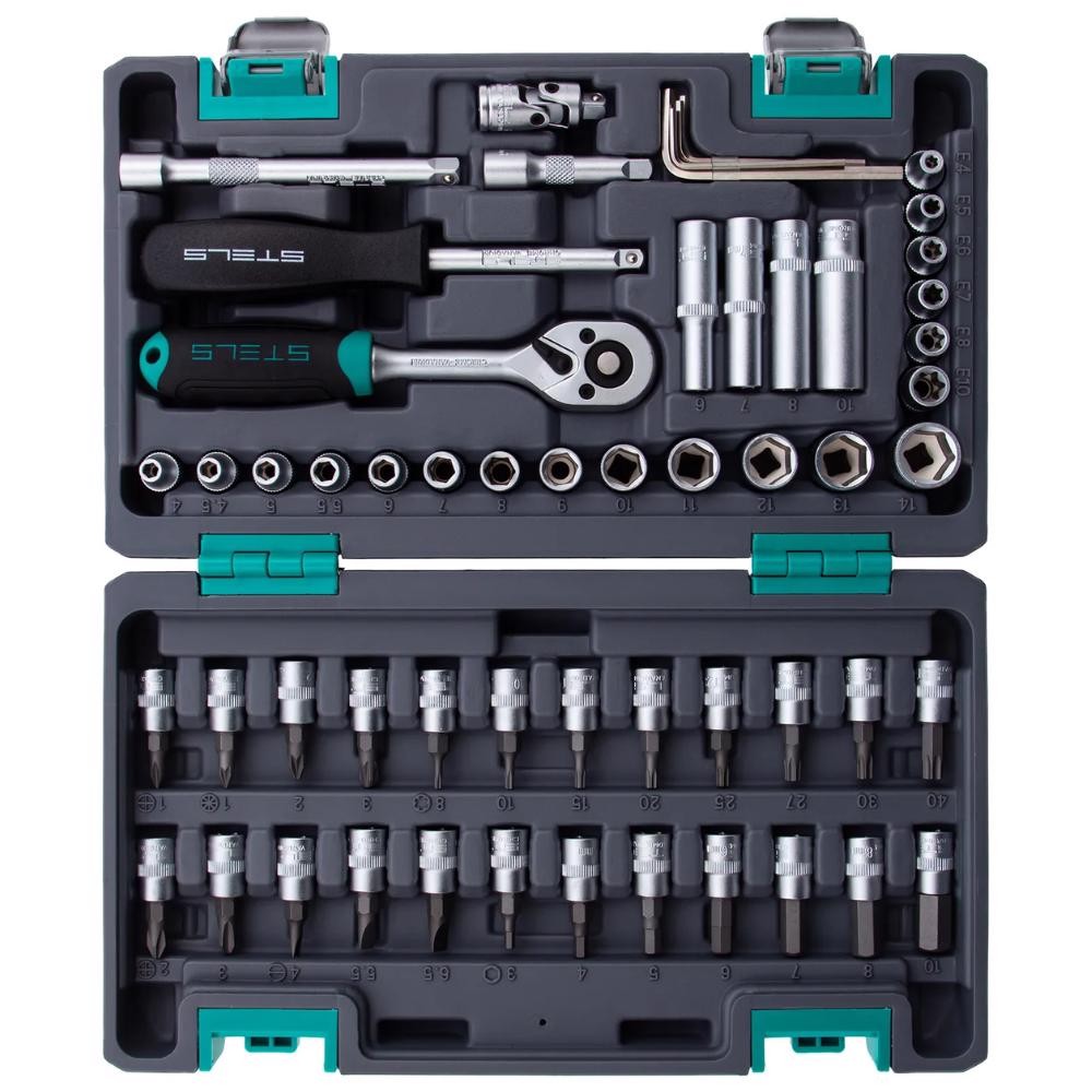 Jogo de Soquetes 1/4 POL Kit 57 Peças com Catraca 1410155 STELS
