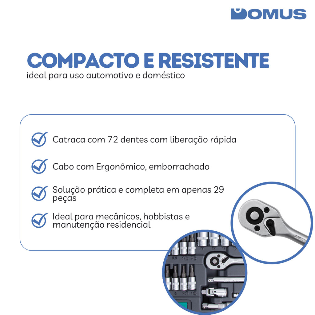 ***PRODUTO A PRONTA ENTREGA COM ENVIO IMEDIATO*** ITEM ORIGINAL COM NOTA FISCAL Somos a Domus, Loja oficial da Shopee. Temos 5 anos de experiência em E-Commerce e nosso maior objetivo é garantir a satisfação dos nossos clientes! Jogo de Soquetes 1/4Pol Aço Cromo Vanádio 29 Peças – Stels | Compacto, resistente e ideal para uso automotivo e doméstico O Jogo de Ferramentas Stels 1410055 reúne praticidade, resistência e desempenho em um conjunto de 29 peças com encaixe de 1/4 polegada, ideal para manutenção de veículos e reparos residenciais. Produzido em aço cromo-vanádio com tratamento térmico, oferece longa durabilidade e resistência ao desgaste. Acompanha estojo plástico com organização interna marcada, que facilita o acesso e armazenamento seguro das ferramentas. Informações técnicas: Material: Aço Cromo-Vanádio com acabamento Anticorrosivo Capacidade / Pressão / Medidas específicas: Encaixe de 1/4 polegada; catraca com 72 dentes Cor: Metálico com Detalhes em Preto e Verde