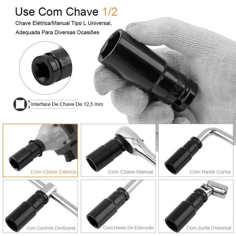 Jogo de Soquetes de Impacto 15 Peças 8 A 32mm para condução de parafuso em carros