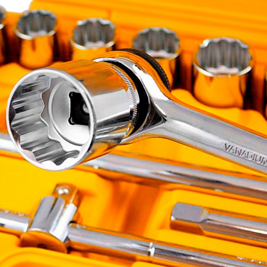| Jogo De Soquetes Kit Chave Catraca Maleta De Completa Amarelo este produto | R$ 179,90 | 29% | 5.0/5 | 1 |