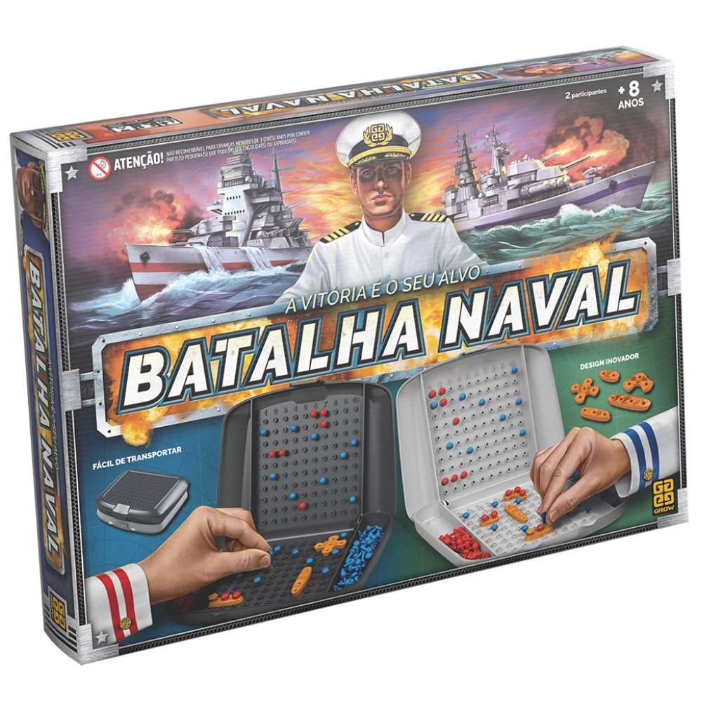 ***PRODUTO GROW EM PORTUGUÊS, ORIGINAL, OFICIAL, LACRADO E COM NOTA FISCAL*** JOGO BATALHA NAVAL GROW ORIGINAL LACRADO BRINQUEDO DE MESA FAMÍLIA DIVERSÃO TABULEIRO OFICIAL GAME Você gosta de jogos clássicos de tabuleiro que trabalham sua mente, como Batalha Naval? Hoje é seu dia de sorte! Simples e envolvente, o jogo Batalha Naval ajuda a resolver questões lógicas, onde você tenta prever os passos do seu rival e afundar o máximo de embarcações! Aqui na Grow, você encontra o tabuleiro de Batalha Naval com algumas novidades, como novas embarcações e um novo pino torpedo para afundar automaticamente a embarcação inimiga, além de peças plásticas mais realistas e outros diferenciais! Um jogo de estratégia simples e envolvente. Dele participam dois jogadores. Cada um exerce o papel de almirante, comandando sua esquadra em alto-mar. Posicione desde submarinos até porta-aviões, e tente prever como seu adversário organizou os dele. Lógica, dedução e sorte são elementos para você disparar tiros certeiros e destruir o inimigo. Apenas o melhor vencerá a batalha! Leve essa emoção para onde quiser, e mostre que você esta sempre pronto para mais um combate! Informações Técnicas: - Material: Papel, Papel Cartão, Polietileno e Poliestireno. - Contém: 2 maletas-tabuleiros, 252 pinos azuis, 84 pinos vermelhos, 2 esquadras, 1 manual de instruções - EAN: 7908010118537 - Código: 01853 - Produto certificado: INMETRO CE-BRI/ICEPEX-N 01264-25 - Dimensões da embalagem: 37,6 x 27,0 x 5,5 cm - Peso: 660g - JOGO DE TABULEIRO - 2 JOGADORES - 8+ ANOS - GROW - Garantia: Contra defeitos de fabricação: 3 meses pelo fabricante - Prazo de Validade: Indeterminado Obs: O tamanho de cada peça pode sofrer variações. ATENÇÃO! NÃO RECOMENDÁVEL PARA CRIANÇAS MENORES DE 3 (TRÊS) ANOS POR PODER GERAR PARTE(S) PEQUENA(S) QUE PODE(M) SER ENGOLIDA(S) OU ASPIRADA(S). --------------------------------------------------- SEJA MUITO BEM VINDO(A) A LOJA DE BRINQUEDOS DO CANAL 40 POR QUÊ COMPRAR NA LOJA DE BRINQUEDOS DO CANAL 40? *Enviamos seu pedido sempre no mesmo dia ou no máximo no próximo dia útil dependendo do horário da sua compra! *Produtos lacrados, originais e oficiais da mais alta qualidade; *Experiência única de compra (incluindo a experiência olfativa - você sentirá nosso cheiro); *Todos os nossos produtos estão à pronta entrega em nosso estoque físico aqui no Brasil; *Seu pedido será enviado com segurança e agilidade; IMPORTANTE: Tenha tranquilidade de comprar com quem está disposto a te oferecer o melhor atendimento, caso tenha algum problema após a compra, conte com nossa equipe de pós venda para solucioná-lo! A LOJA DE BRINQUEDOS DO CANAL 40 tem a missão de garantir a satisfação total do seu cliente, tanto nos produtos quanto no atendimento. Assim estabelecemos uma relação única de confiança! Não encontrou o que procurava? Clique na foto da nossa logo para entrar em nossa loja e ver todos os nossos produtos OU nos mande uma mensagem diretamente aqui pelo chat. SERÁ UM PRAZER ATENDÊ-LO(A)! --------------------------------------------------- MUITO PRAZER, ME CHAMO FELIPE CAMARGO, SOU DONO, CEO E CRIADOR DE CONTEÚDO DO CANAL 40. DESDE JÁ, DEIXO AQUI O MEU MUITO OBRIGADO!!! CANAL 40 - LOJA DE BRINQUEDOS LTDA DEIXE SUA CRIANÇA INTERIOR FELIZ E APROVEITE!