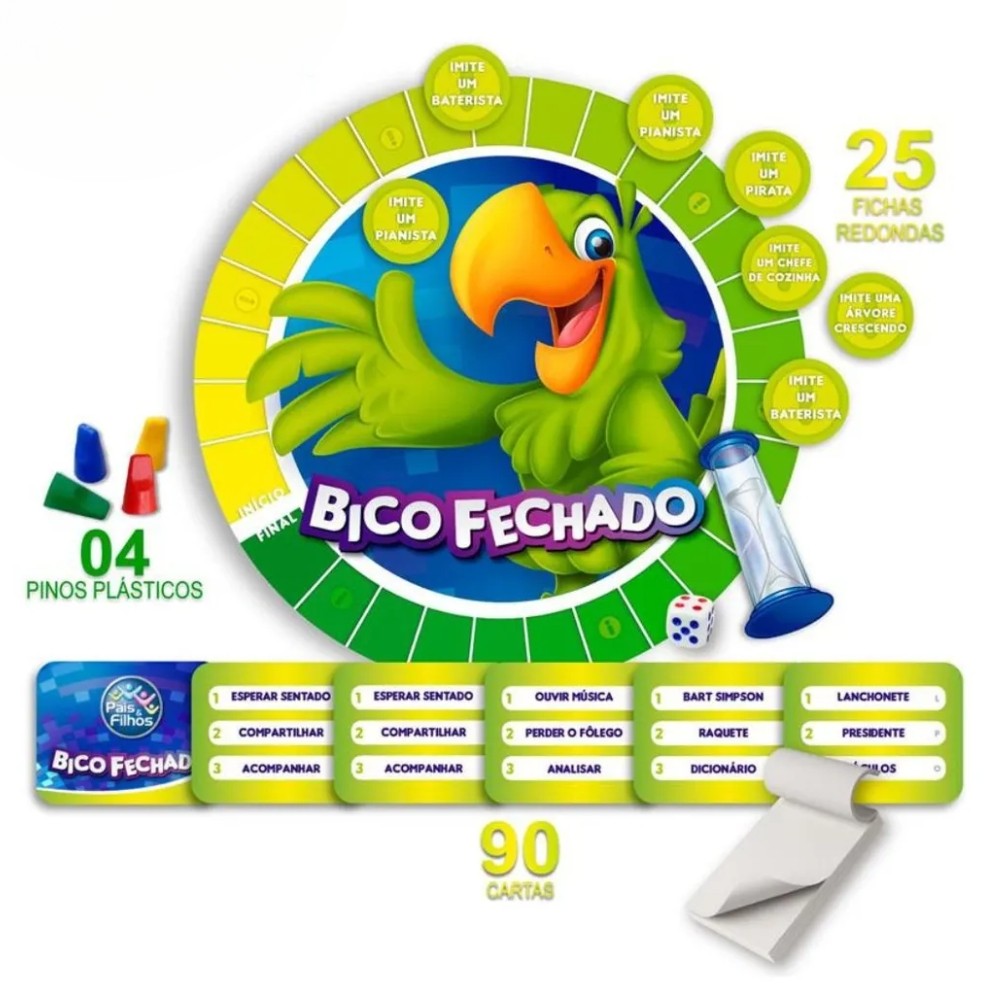 JOGO DE TABULEIRO BICO FECHADO PAIS E FILHOS DIVERSÃO MÍMICA ADIVINHAÇÃO LORO JOSÉ PAPAGAIO CARTAS &