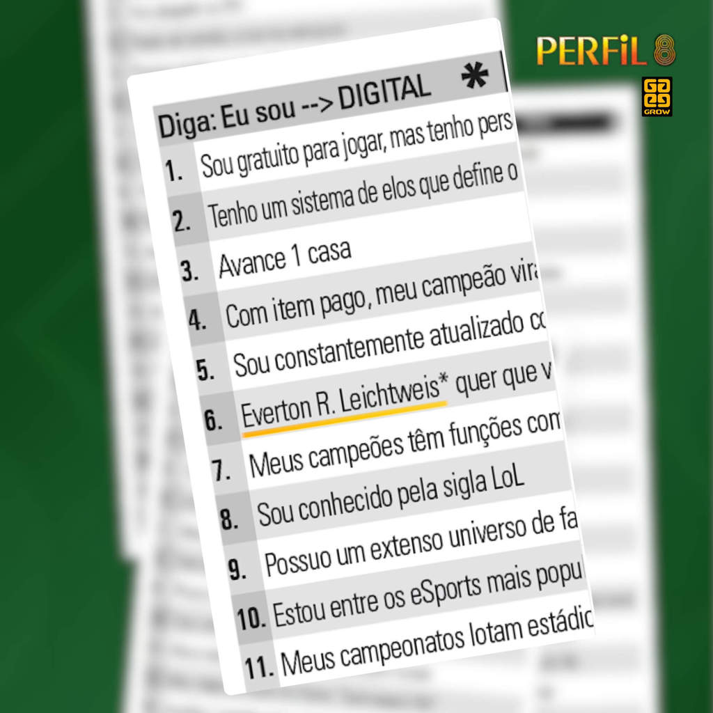Se você gosta de desafios, interação e boas risadas, o Perfil 8 é o jogo perfeito para reunir a família e os amigos! Com uma proposta envolvente e dinâmica, ele testa seus conhecimentos, sua intuição e, claro, sua habilidade de adivinhar com poucas dicas. Afinal… de quantas dicas você precisa?Perfil é um dos jogos mais populares da Grow, e acaba de ganhar sua tão aguardada nova edição: o Perfil 8! O desafio continua o mesmo: adivinhar com o menor número possível de dicas quem é a pessoa, qual é o lugar, o ano, o objeto ou o elemento do mundo digital, antes que os outros jogadores descubram! A grande novidade desta versão é que, dentre 350 cartas, 40 delas foram criadas pelos fãs, escolhidas entre diversas sugestões enviadas nós.Como jogar Perfil?Os participantes recebem uma lista de pistas sobre uma pessoa, lugar, objeto, ano ou tema digital. A cada dica revelada, o desafio fica mais fácil — mas quanto menos dicas você usar para acertar a resposta, mais pontos você ganha! É uma competição leve, estratégica e extremamente divertida.Por que você vai amar ter o Perfil 8 em casa?Porque ele é aquele tipo de jogo que une todo mundo: jovens, adultos, famílias, casais e amigos. É ideal para festas, encontros de fim de semana, viagens, confraternizações ou até para animar um dia comum. Cada rodada é imprevisível, surpreendente e cheia de revelações — sempre rendendo boas histórias e muita diversão.Ótimo também para presentear!O Perfil 8 é uma excelente opção de presente criativo para quem ama jogos de raciocínio! Características:-Marca: Grow-Modelo: 04992*Imagens meramente ilustrativas*Conteúdo da embalagem: - 350 cartas - 01 tabuleiro - 06 peões - 20 fichas vermelhas, 1 ficha amarela e 5 fichas azuis - 01 manual de instruções