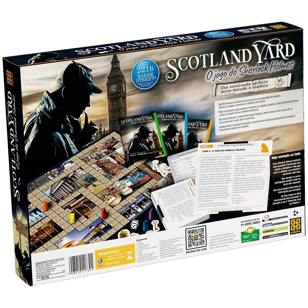 JOGO DE TABULEIRO SCOTLAND YARD SHERLOCK HOLMES GROW BRINQUEDO MESA DETETIVE INVESTIGADOR MISTÉRIOS