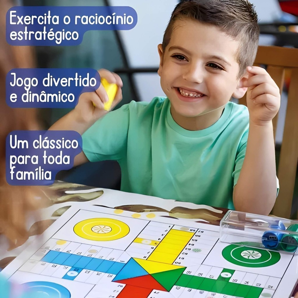 Super Ludo é um jogo de tabuleiro que alia estratégia, sorte e diversão em uma experiência clássica e cativante para todas as idades. Ideal para momentos de confraternização entre família e amigos, este conjunto inclui um tabuleiro colorido, 27 cartas que enriquecem a jogabilidade, 16 pinos em quatro cores vibrantes e 1 dado para avançar pelo caminho de trilhas e decisões. Fácil de aprender e rápido para jogar, Super Ludo é apropriado tanto para crianças quanto para adultos, promovendo a interação entre gerações e criando momentos memoráveis de alegria. Com componentes duráveis e de alta qualidade, este jogo é sinônimo de entretenimento prolongado e recordações marcantes. Dimensões Aproximadas da Embalagem (cm) AxLxP: 25 x 32 x 5.5 Características: - Marca: Pais e Filhos - Modelo: 790772-1 *Imagens Meramente Ilustrativas* Conteúdo da Embalagem: - 01 Tabuleiro - 27 Cartas - 16 Pinos - 01 Dado jogo ludo - ludo - super ludo - jogo de tabuleiro - jogos de tabuleiro