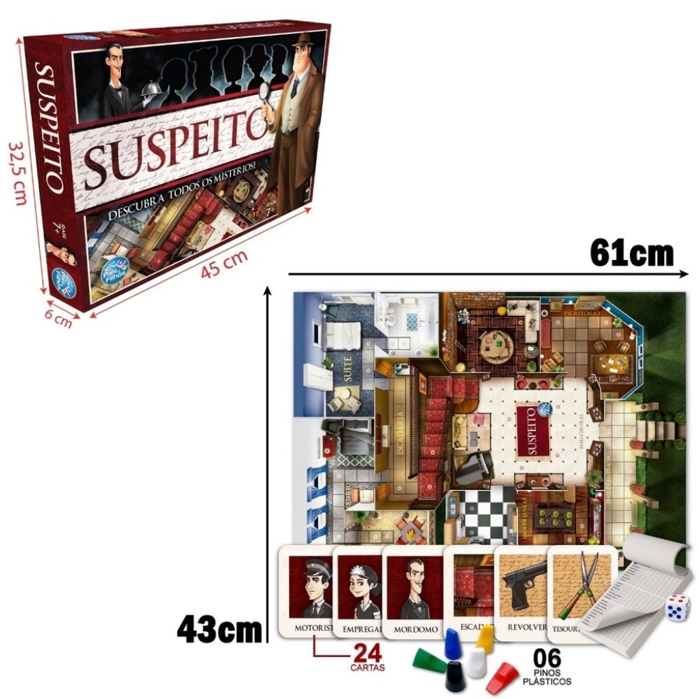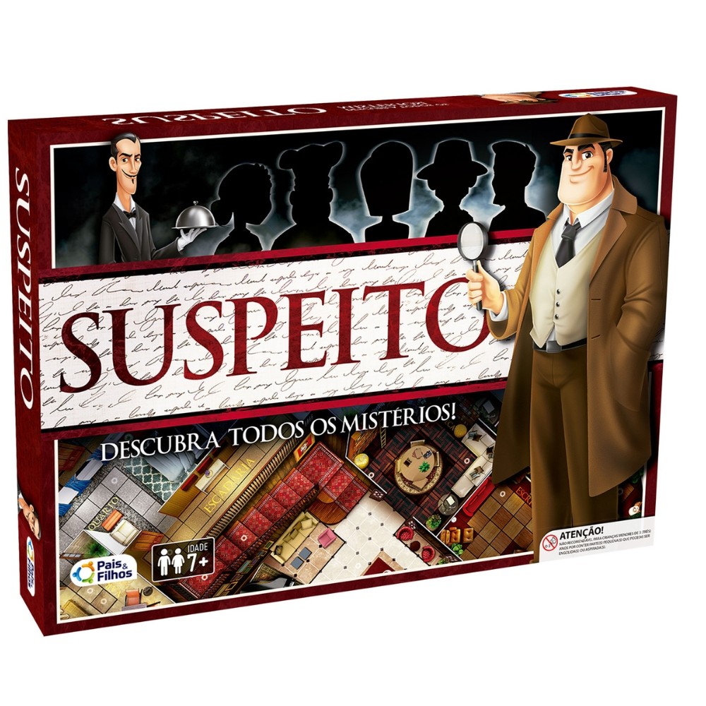 JOGO DE TABULEIRO SUSPEITO PAIS E FILHOS BRINQUEDO DETETIVE INVESTIGADOR MISTÉRIOS MESA FAMÍLIA DICA
