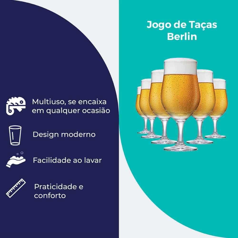 Jogo de Taça de Vidro Berlin, Taça de Cerveja 330ml, 6 pcs - Ruvolo